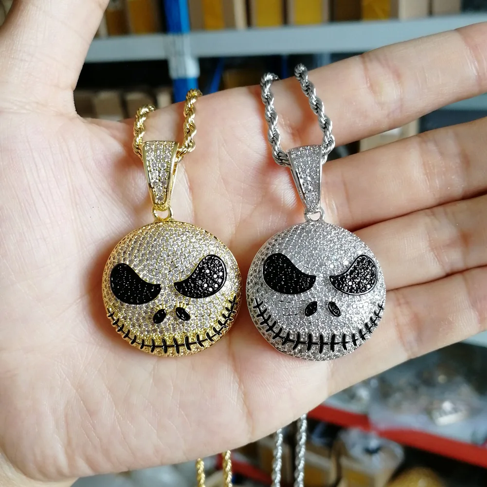 Рождественский череп Джек кристалл кулон хип-хоп Золотое ожерелье