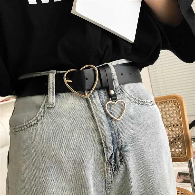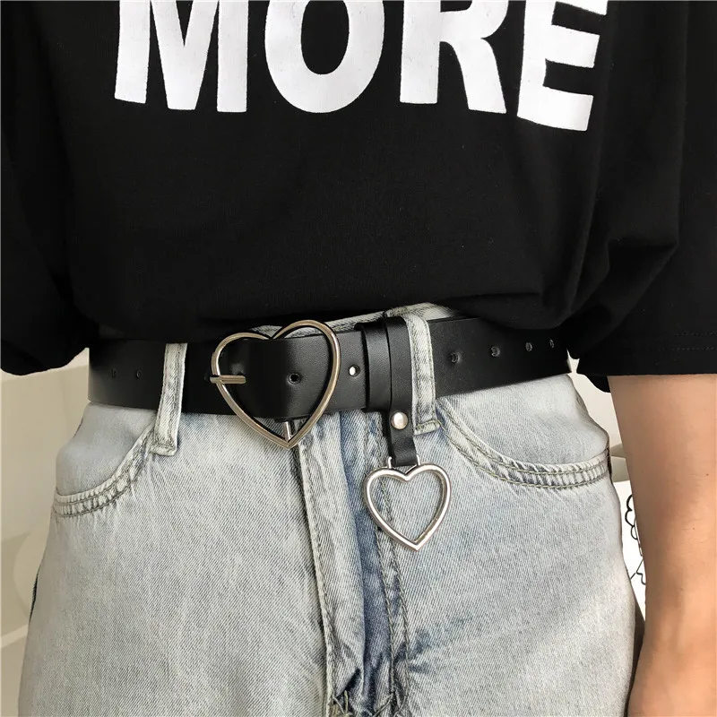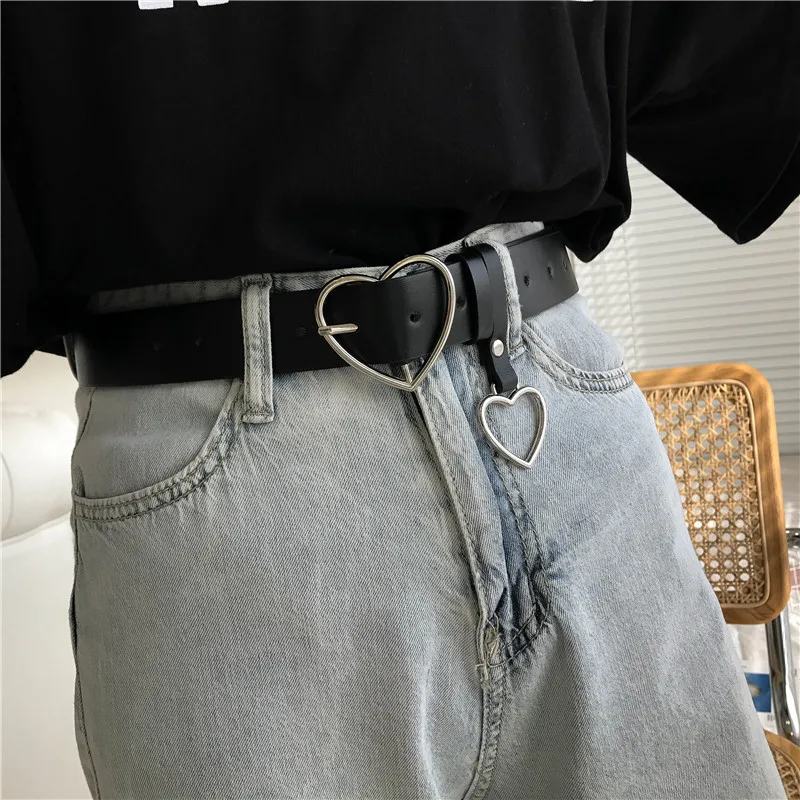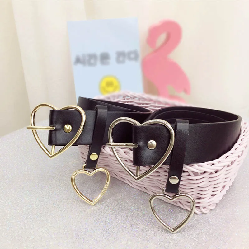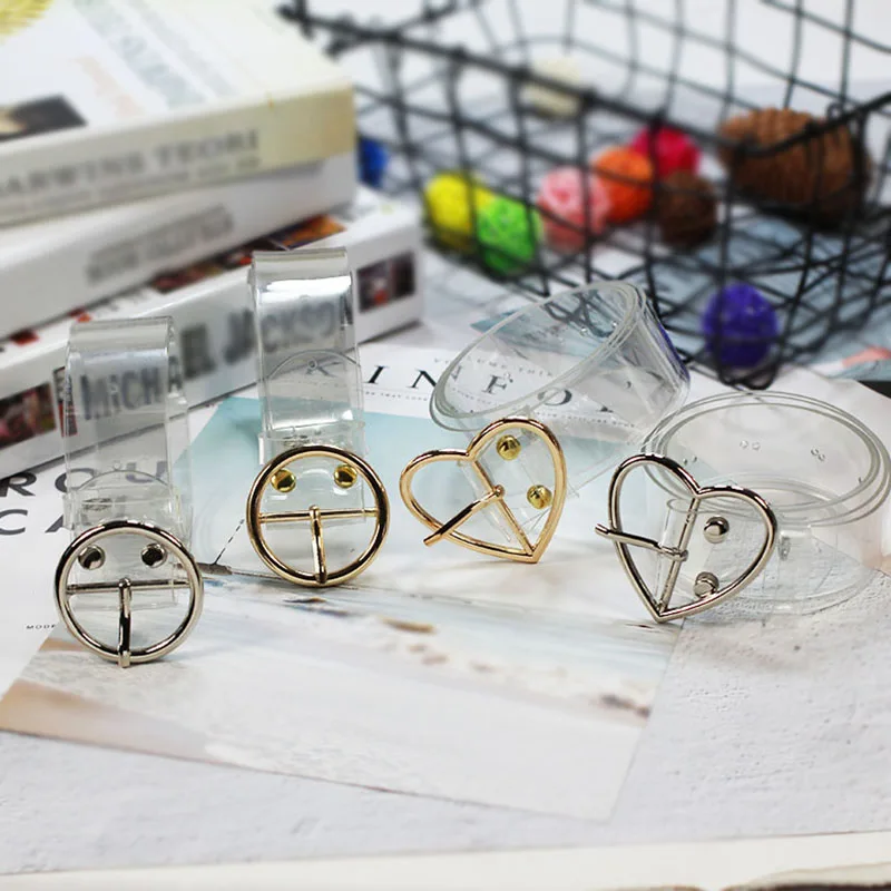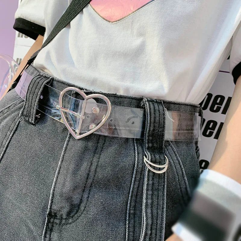 Ремень с пряжкой в форме сердца женский, модный цветной прозрачный пояс из искусственной кожи в стиле панк, повседневный пояс для джинсов и брюк