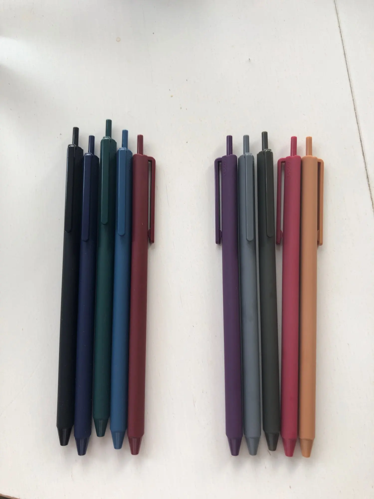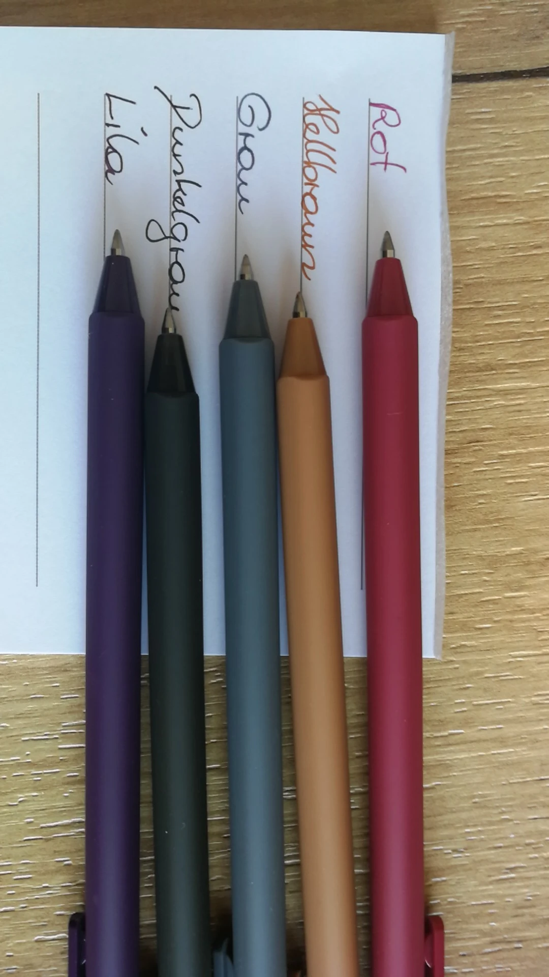 Они пишут очень хорошо, и цвета красивые. Корпус ручки треугольный и удобный для удержания, легкий и мягкий на ощупь. Мне нравятся.