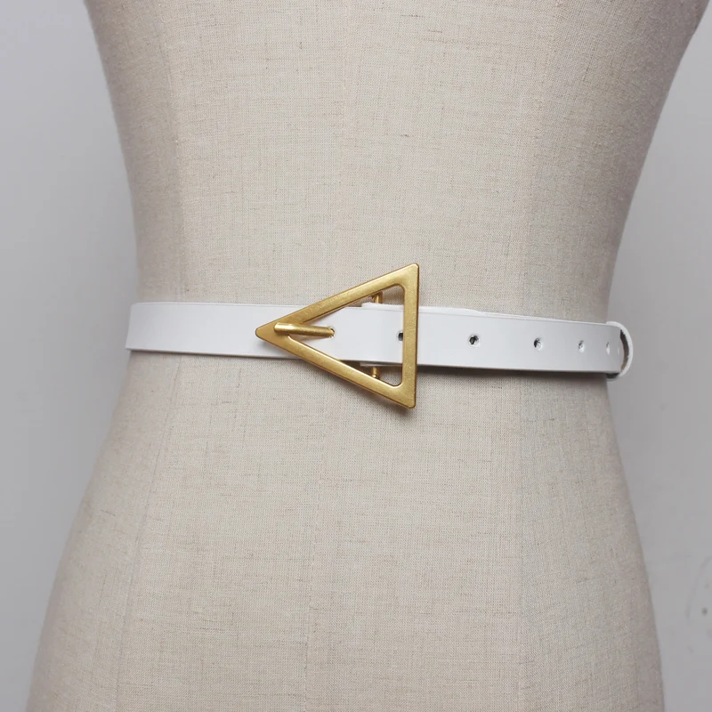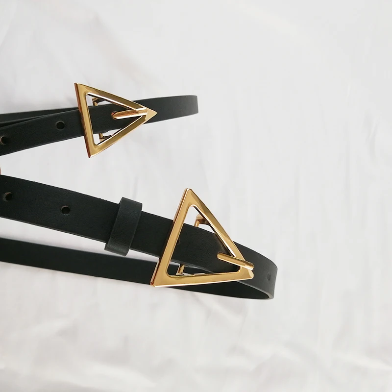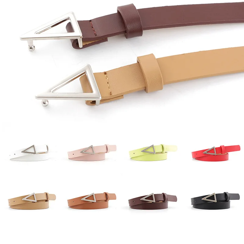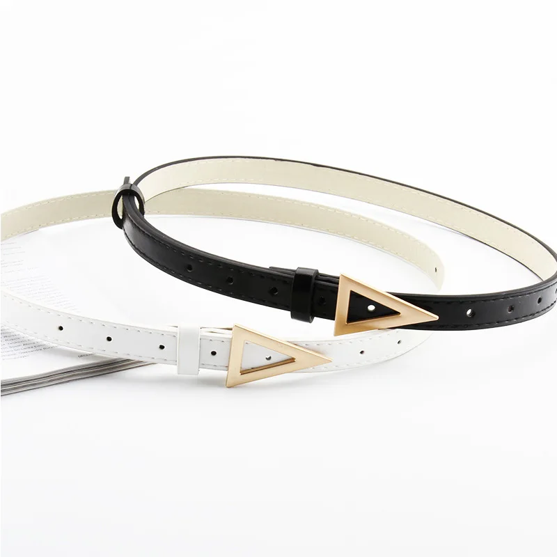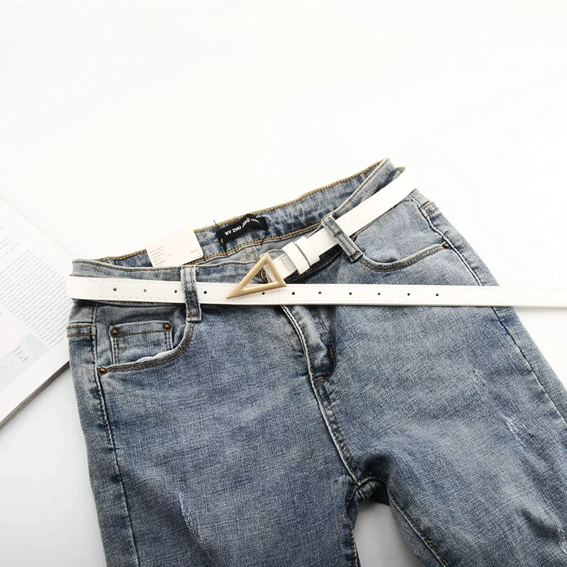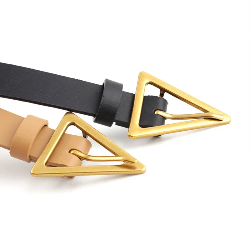Ремень тонкий женский с металлической треугольной пряжкой, стильный пояс для джинсов и платьев