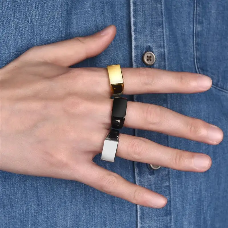 Мужское кольцо в стиле панк квадратные ювелирные изделия из нержавеющей стали 316L настроить кольца Черное золото серебро Цвет водонепроницаемые украшения аксессуары Подарки