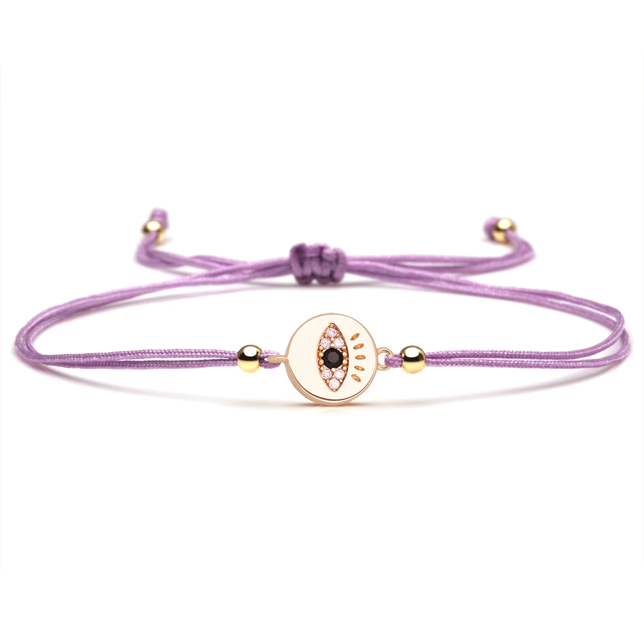 Браслет с подвеской сглаза для женщин и девушек, изящный элегантный круглый латунный браслет со сверкающими фианитами и красными нитями, милое Ювелирное Украшение