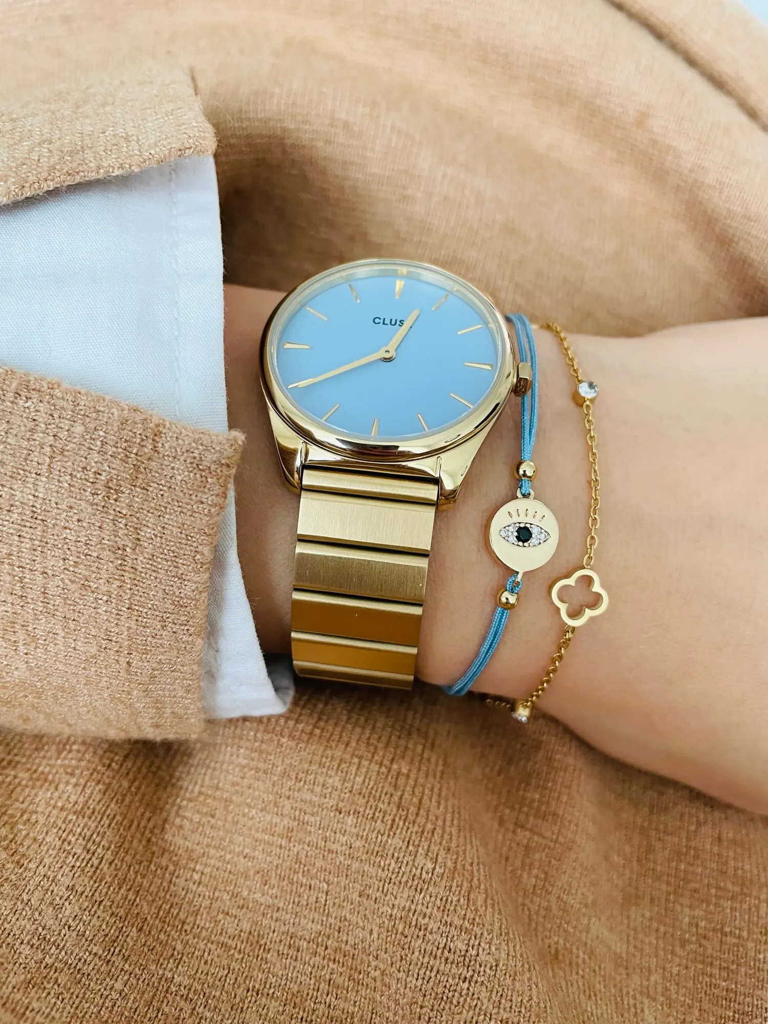 Женский браслет из меди со сверкающими фианитами и подвесками от сглаза, элегантный милый круглый браслет из латуни глаз с фианитами, Красная Нить, синие ювелирные изделия