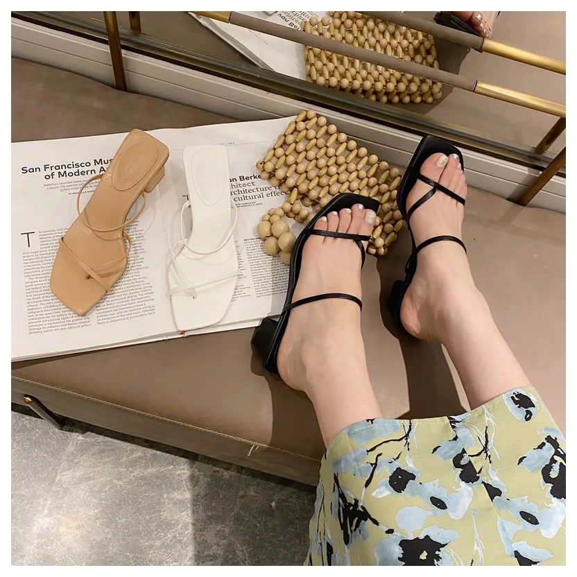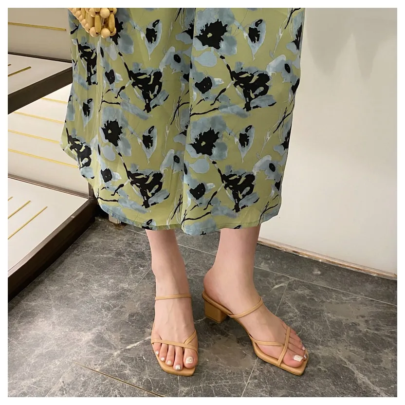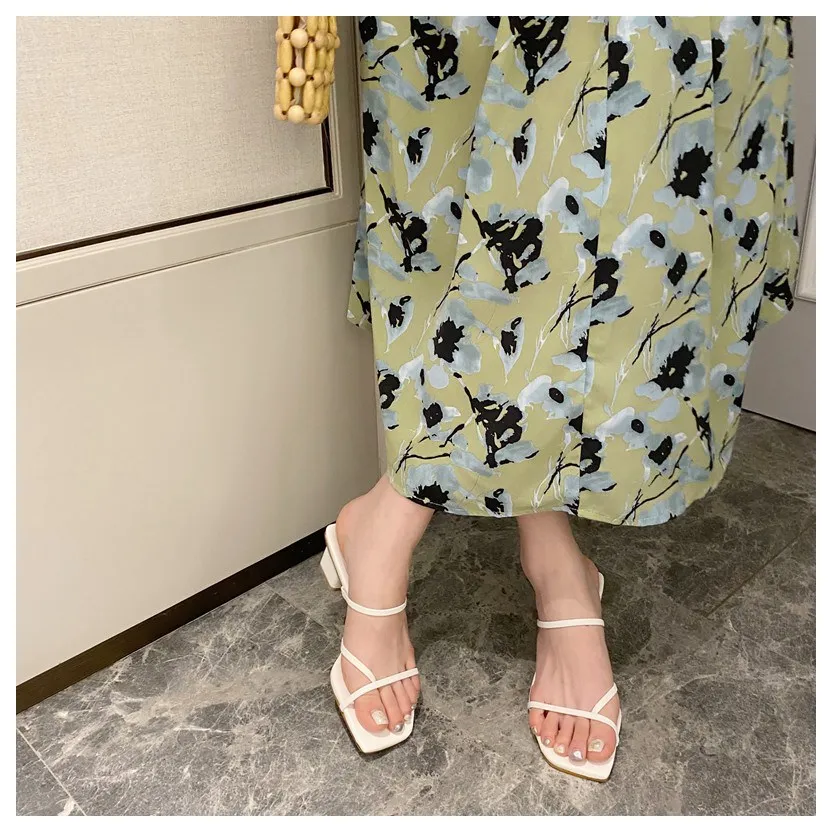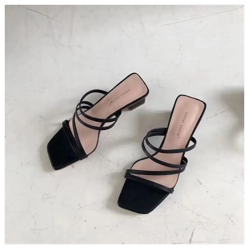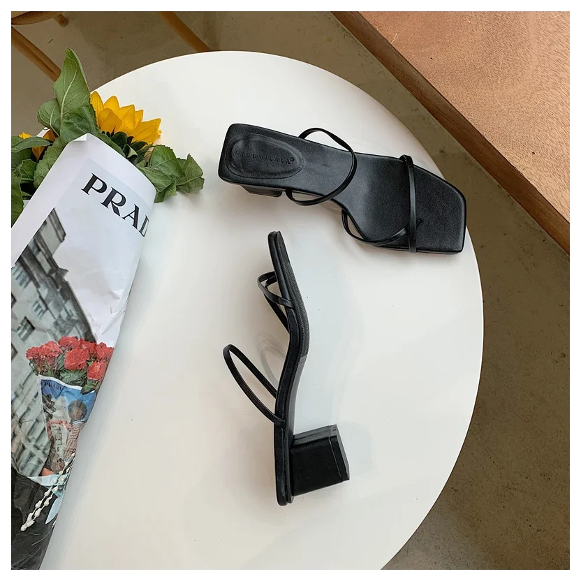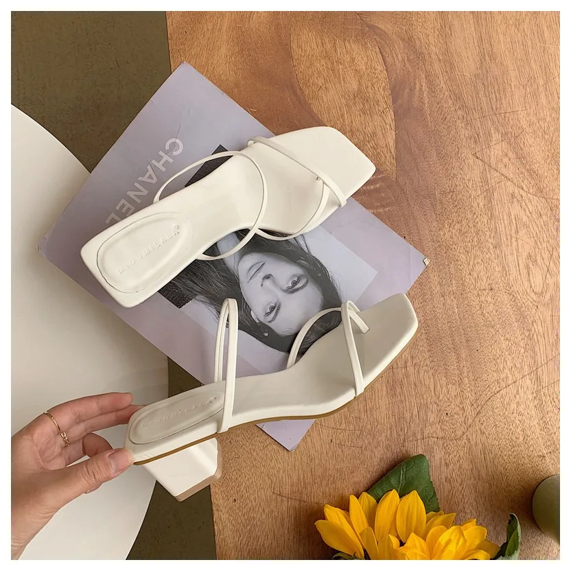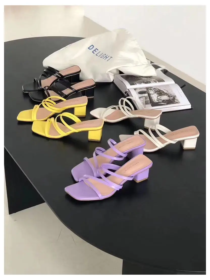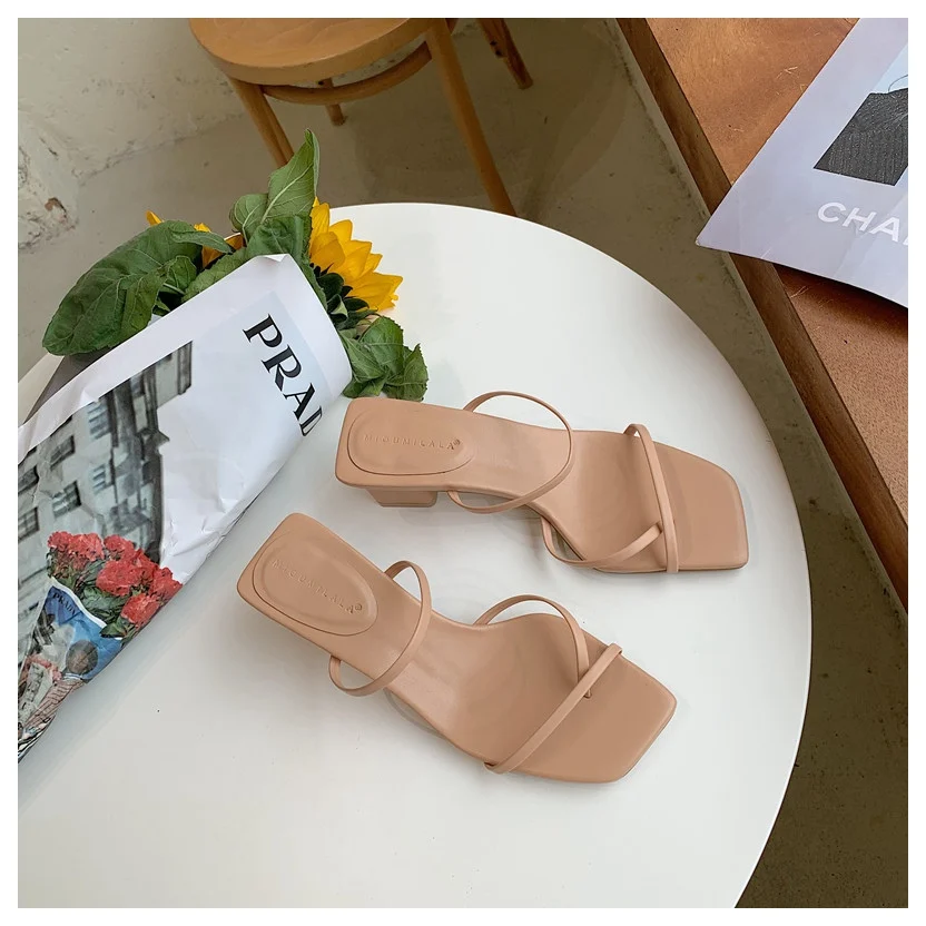 Шлепанцы женские на низком каблуке, шлепанцы на квадратном каблуке, брендовые узкие шлепанцы, шлепанцы больших размеров 41, лето 2021