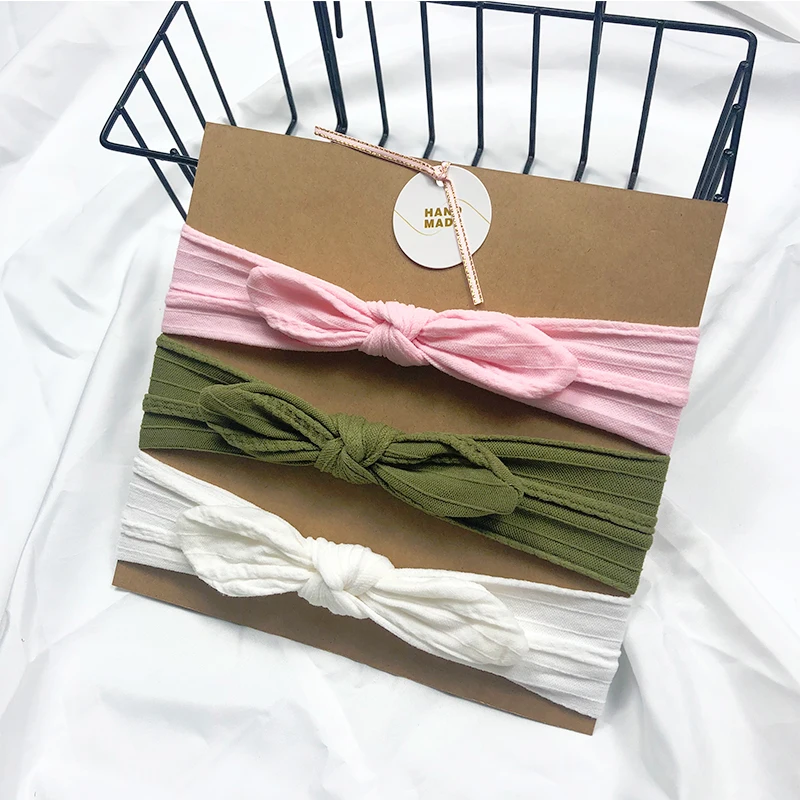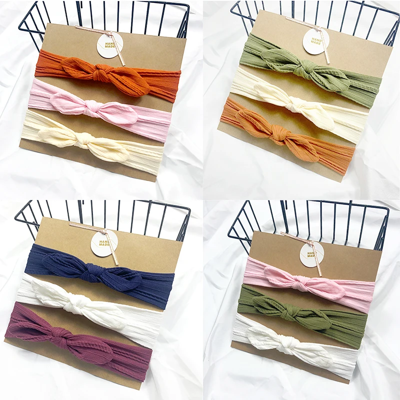 Повязка на голову с бантом для девочек, нейлоновая повязка на голову, 3 шт.лот, аксессуары для волос для новорожденных, детские подарки для детей 0-2 лет