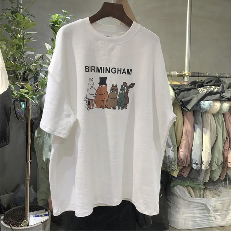 Футболка женская оверсайз с мультяшным принтом, уличная одежда в стиле Харадзюку, Свободный Топ с надписью, лето 2020