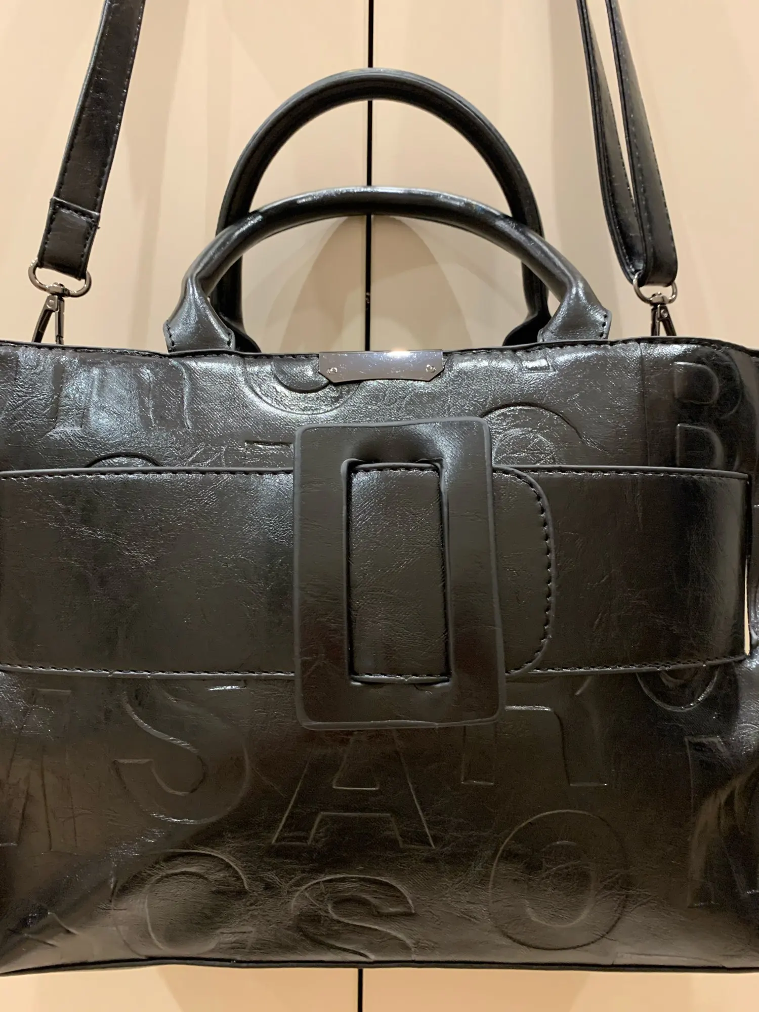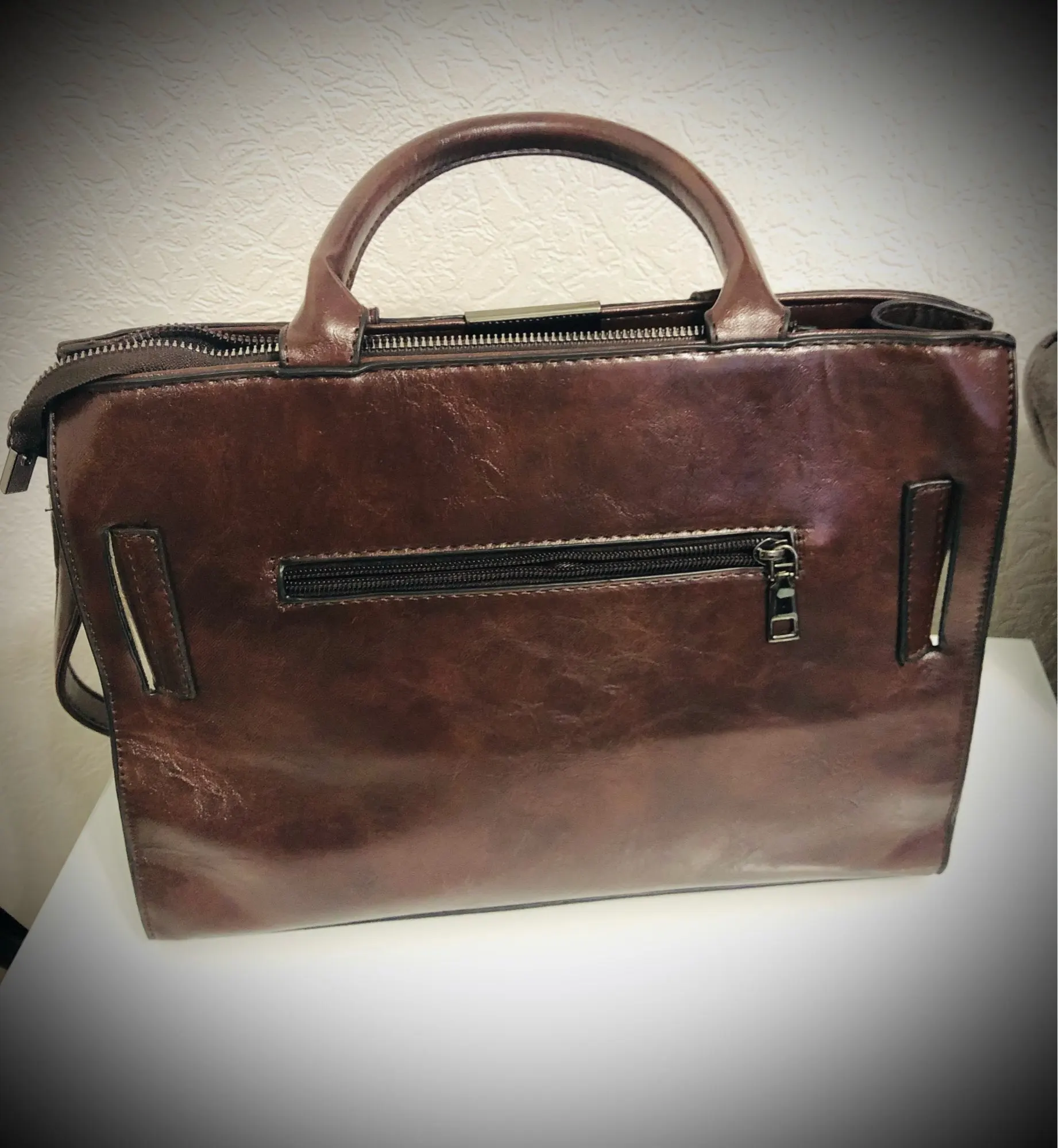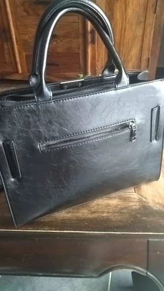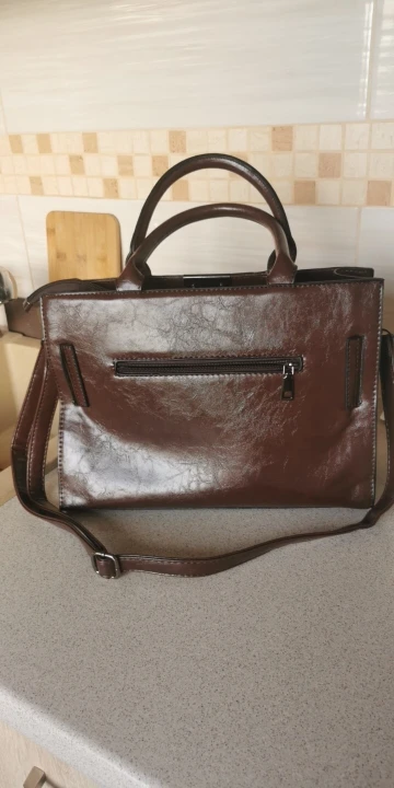 сумка не плохая, но!!! блестящая поверхность делает её дешевой, если бы была матовой, выглядела бы как натуральная кожа, в углах мягкая, не держит форму, скоро будет деформация, ручки переламываются у основания.