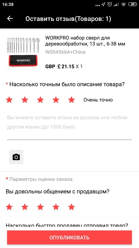 Заказывал с доставкой из России до Ивановской области доехали за 6 дней на почту, трэк отслеживался полностью, упаковано было в пакет с пупырками, сам товар упакован в коробочку с надписью workpro, а также сами свëрла упакованы в чехол. В деле пока не пробовал. Продавцу спасибо.