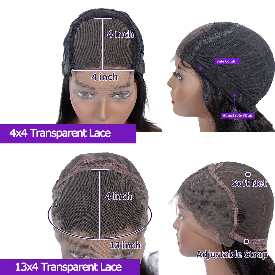 Парик из натуральных волос, 13x4, с предварительно выщипанными бразильскими волосами, прозрачный 4x4