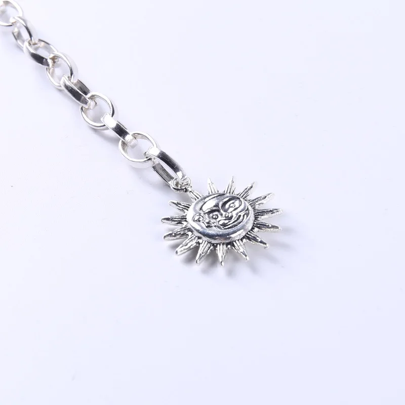 Женский ремень в готическом стиле, серебряная цепочка от солнца и луна, штаны с высокой талией и металлической цепочкой