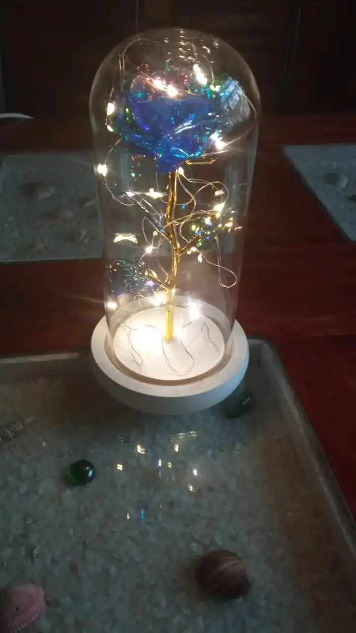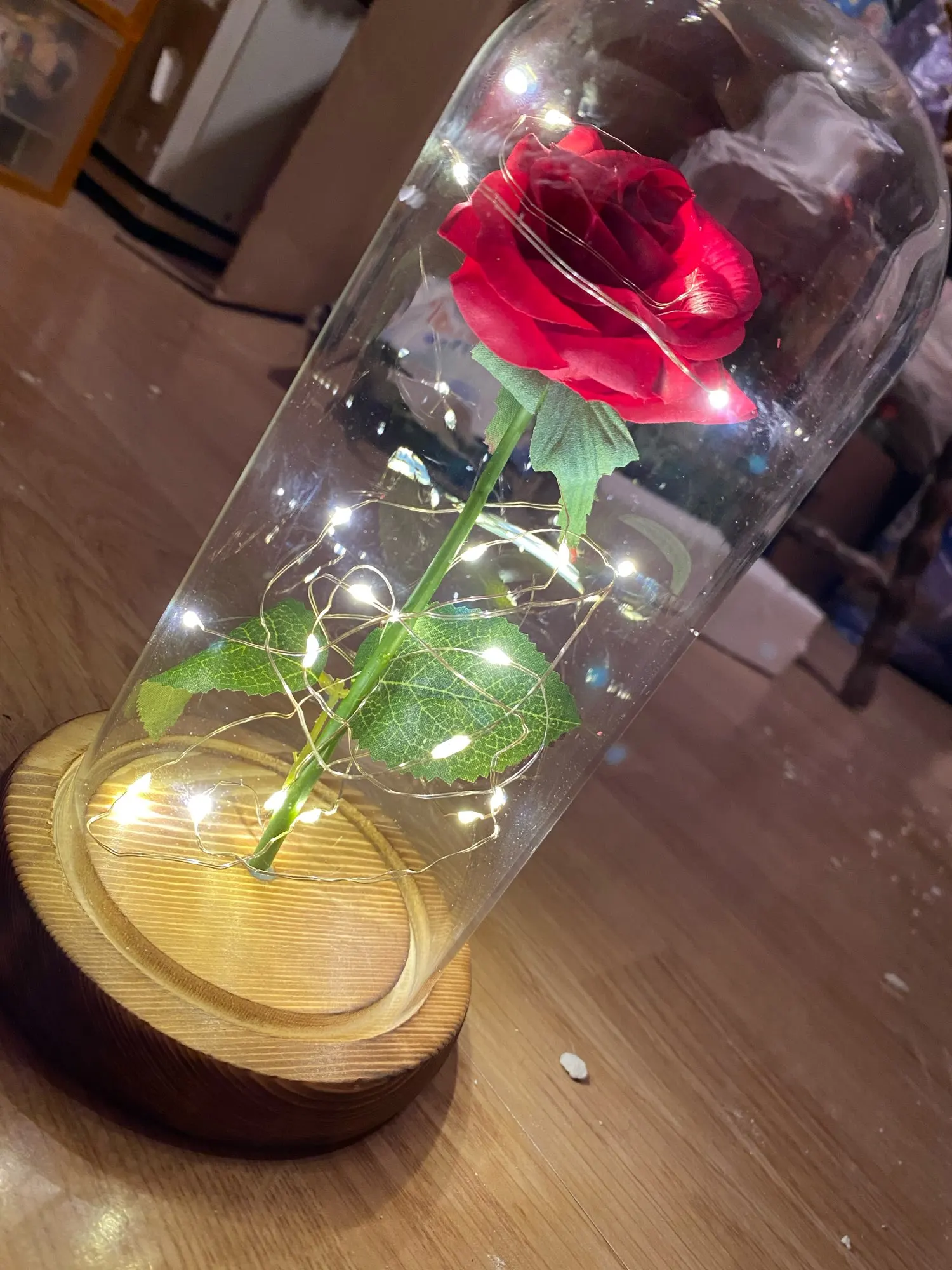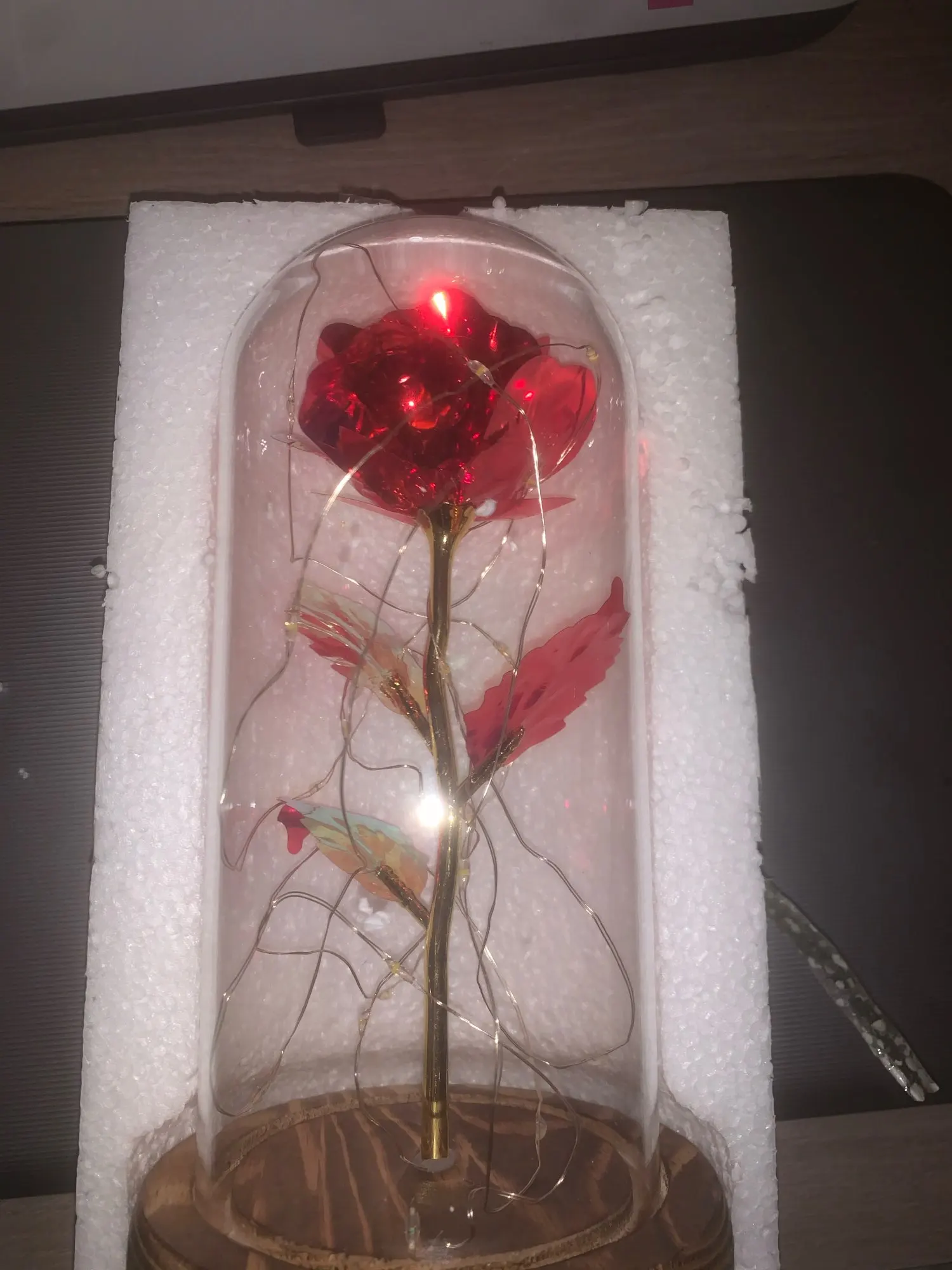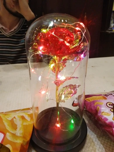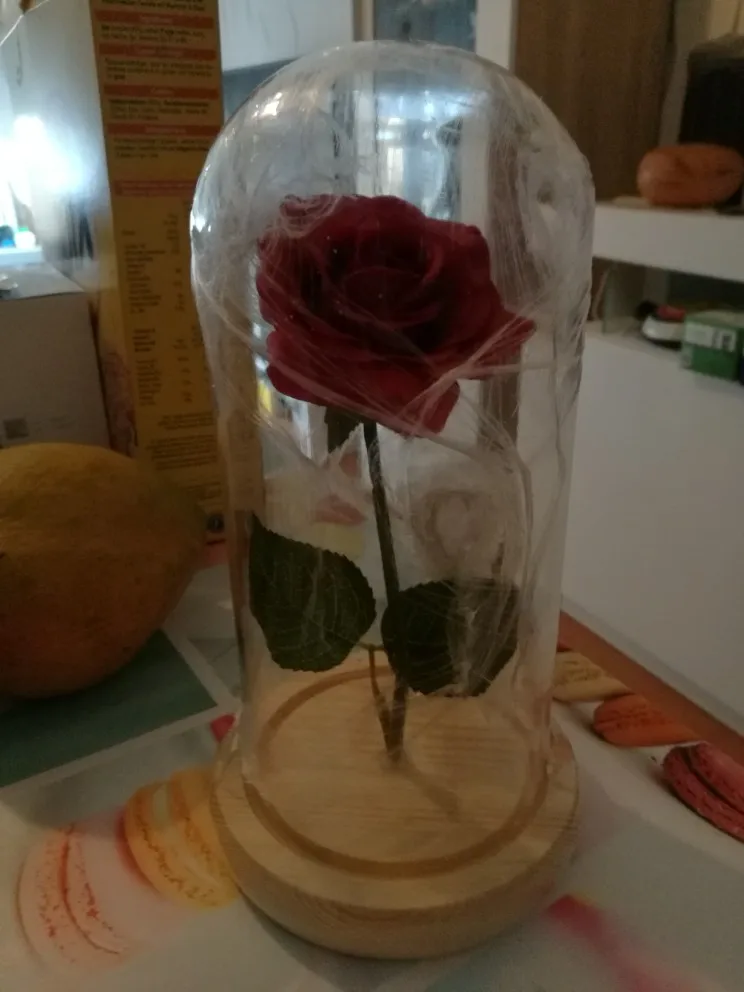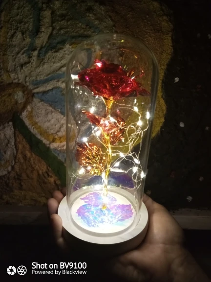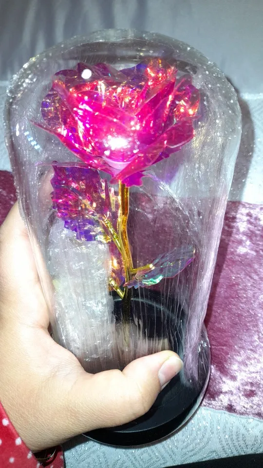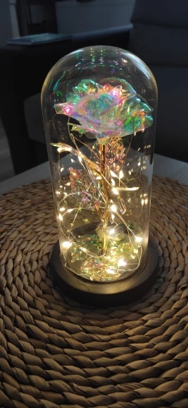 Super belle rose mais le problème c’est que pour ma part c’était la rose en cristal mais c’est plutôt du plastique mais en allumant les lampe sa ne se vois pas donc super achat et en plus c’est arrivé très rapidement