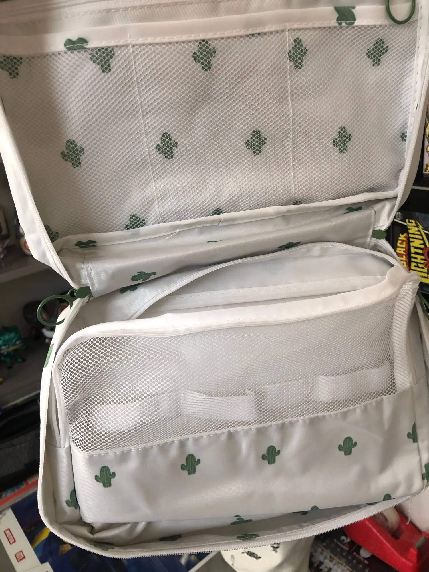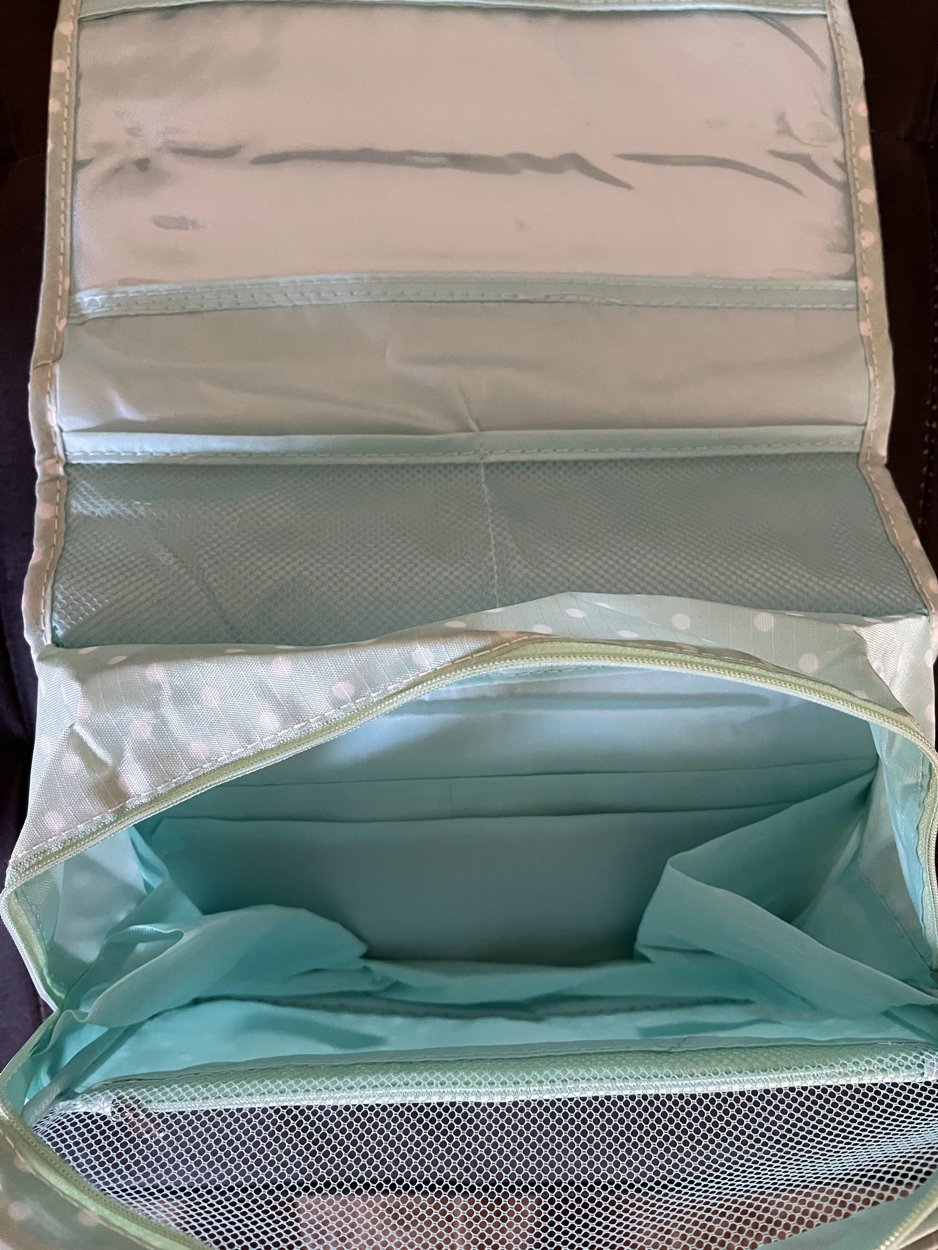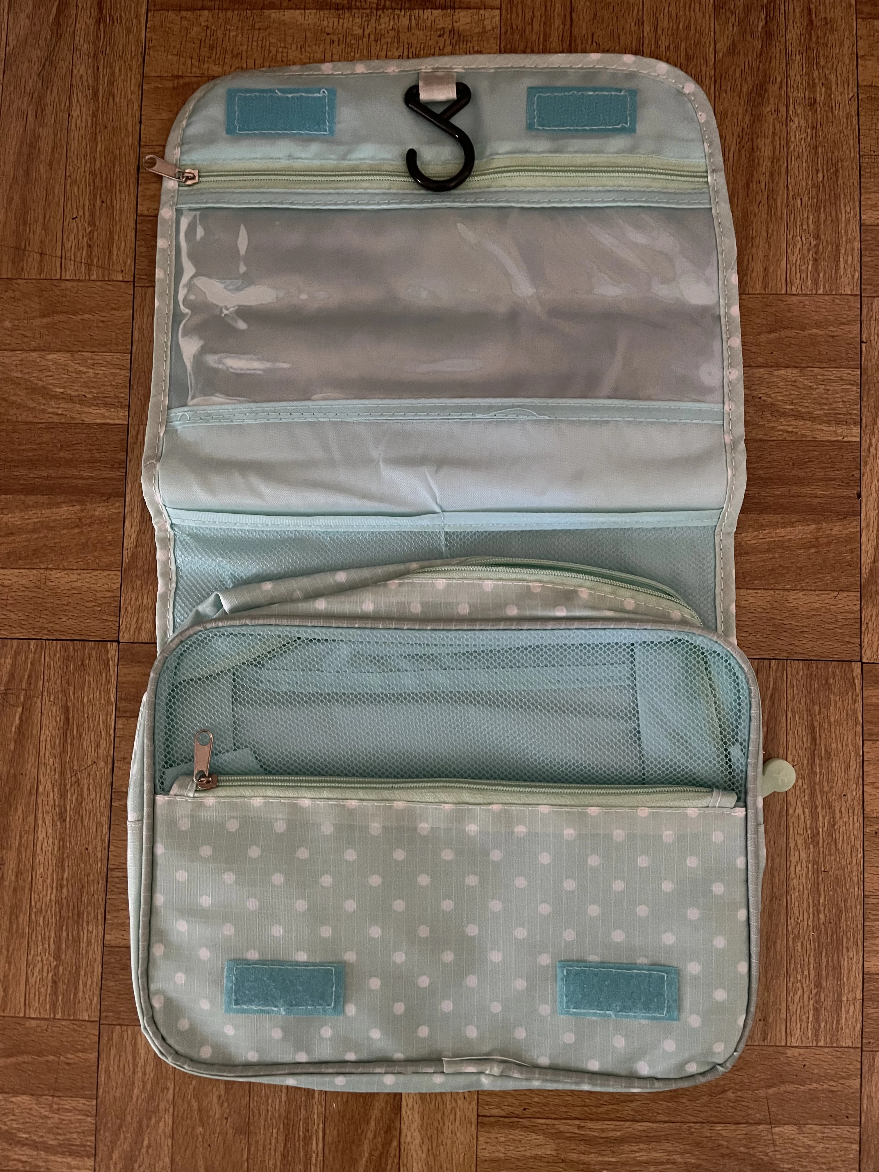 Товар прибыл быстрее, чем я ожидал. Цвет больше мятно-зеленого, чем светло-голубой, показанный на картинке, кроме того, сумка может держать много вещей и идеально подходит для тех, кто путешествует или перемещается между местами. В сумке есть несколько различных карманов и отсеков, которые обязательно пригодятся для небольших предметов, таких как кремы для рук и бальзам для губ