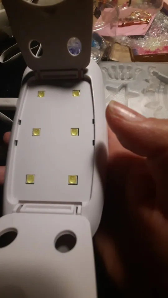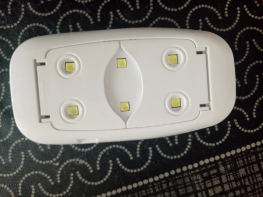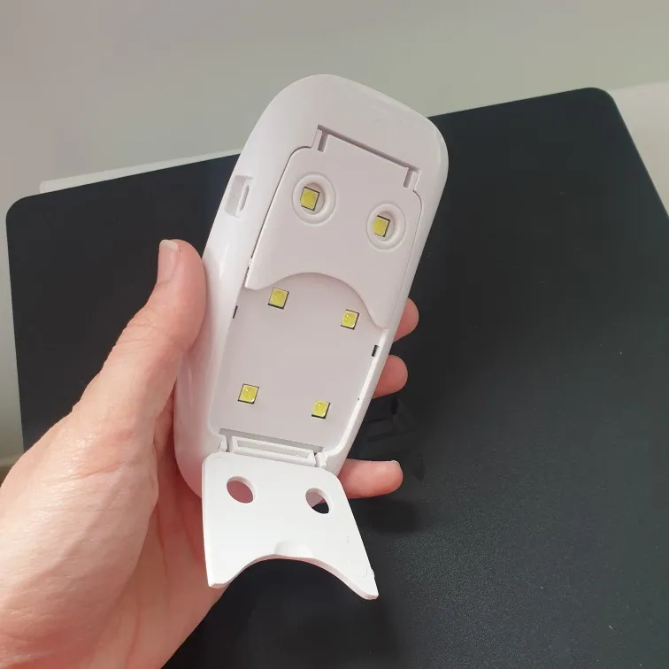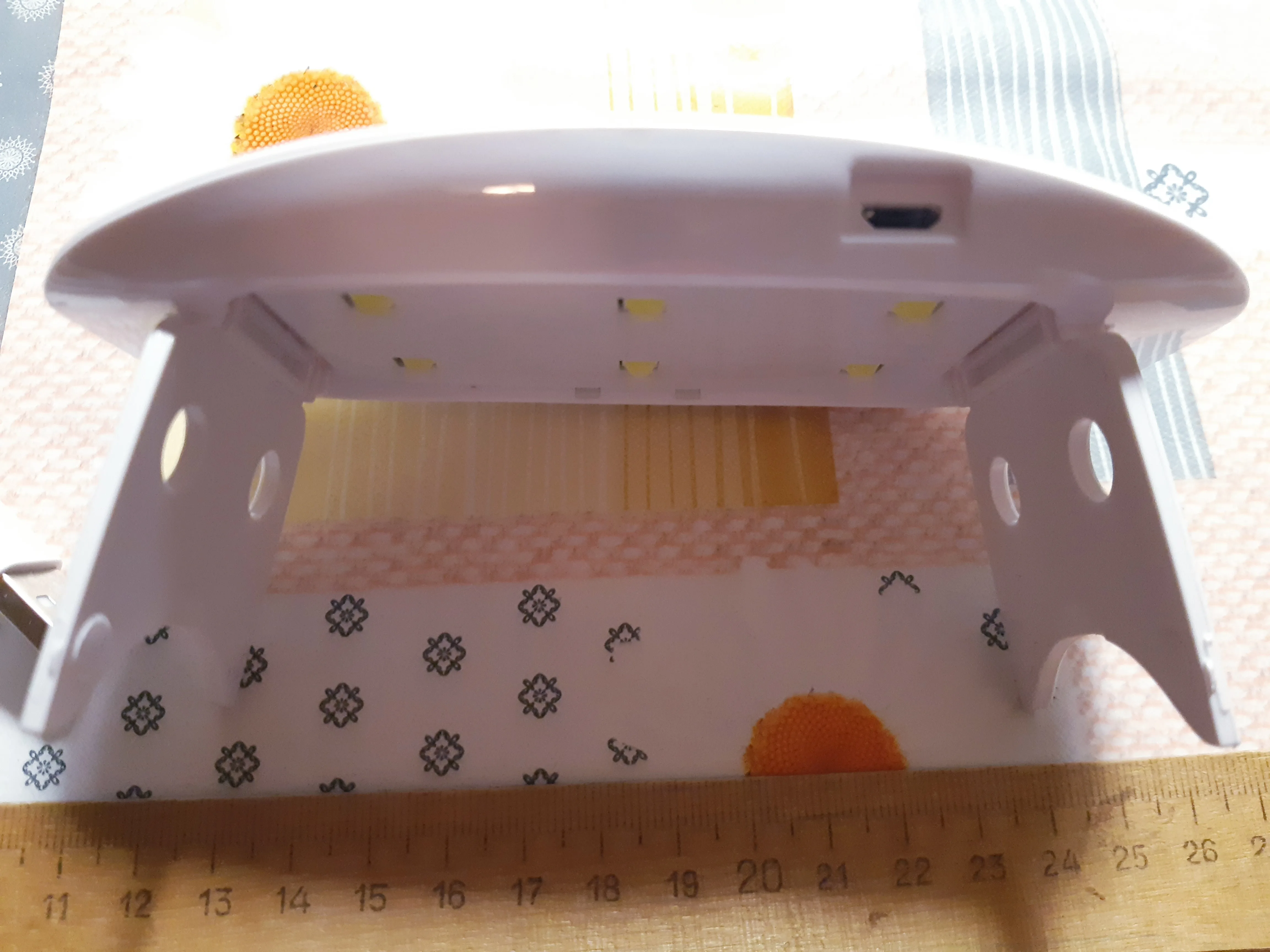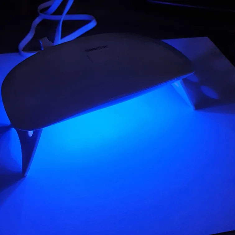Лампа достаточно мощная, для ювелирной работы её хватает, складывается, удобная. Работает от сети. Рекомендую настоятельно или использовать перчатки или сушить, используя пинцет для удерживания.