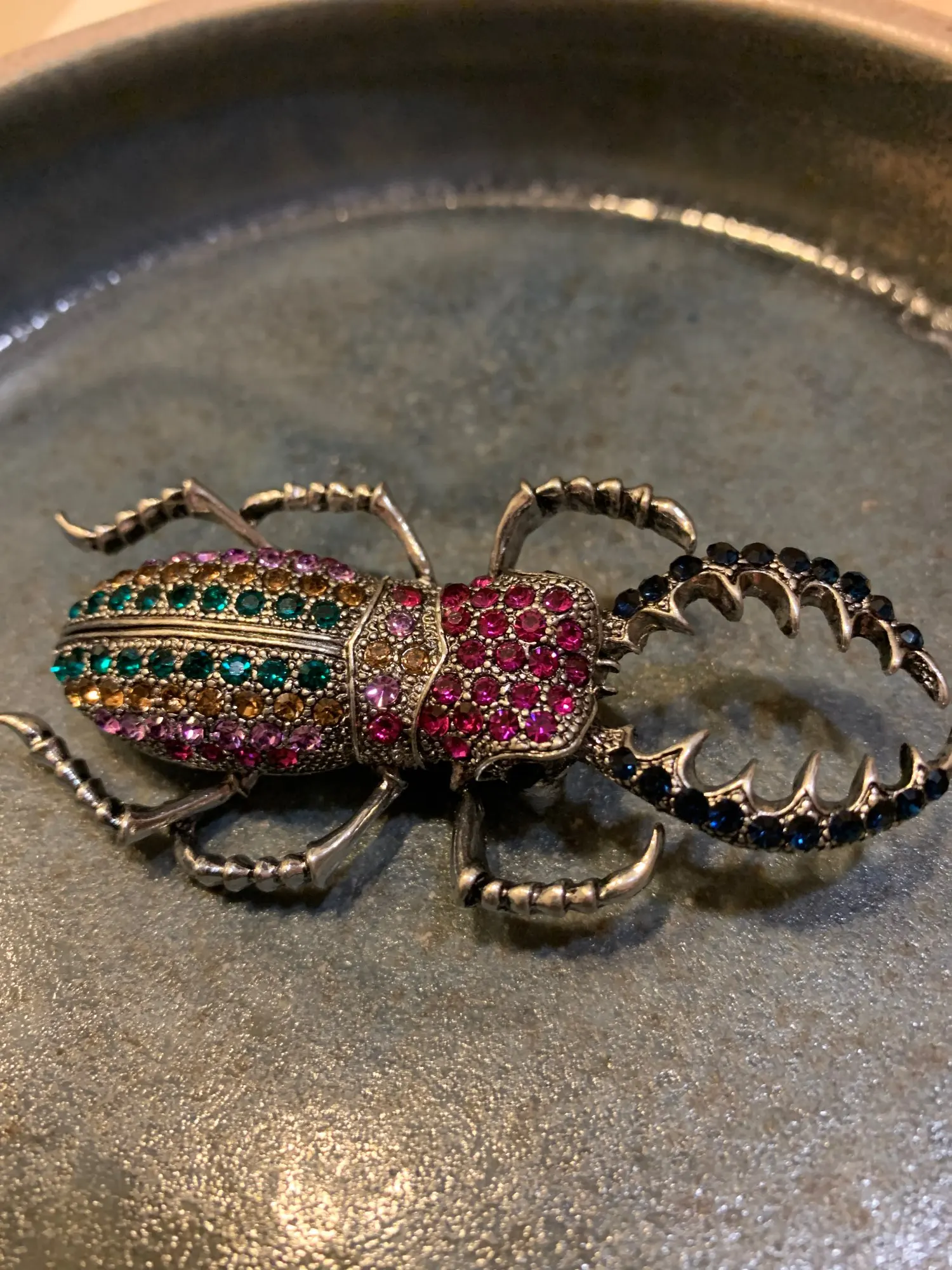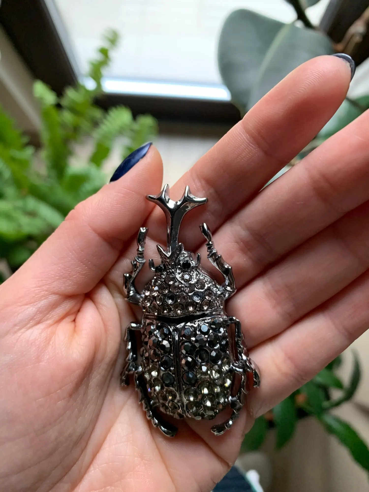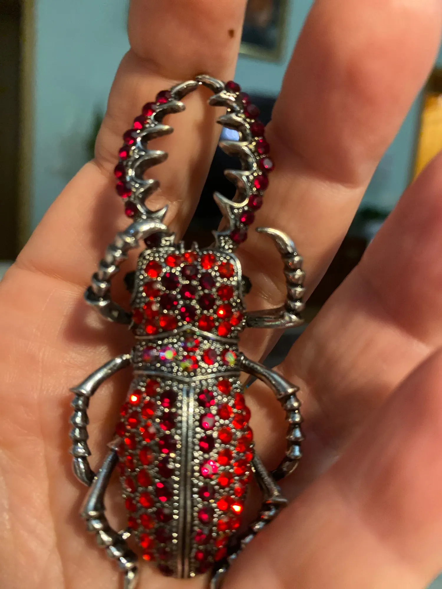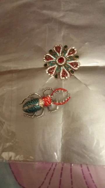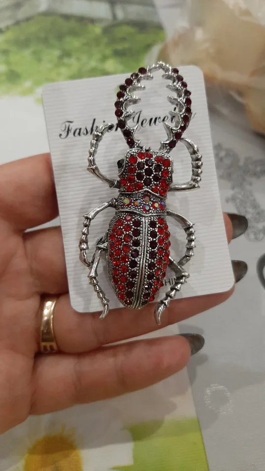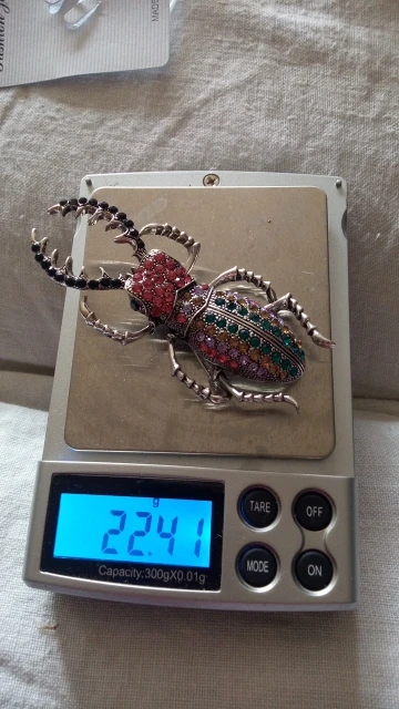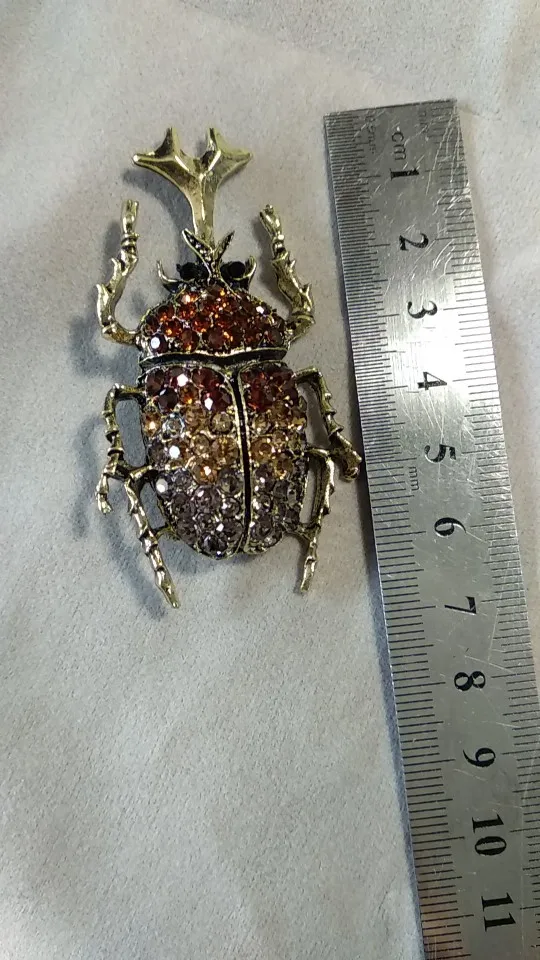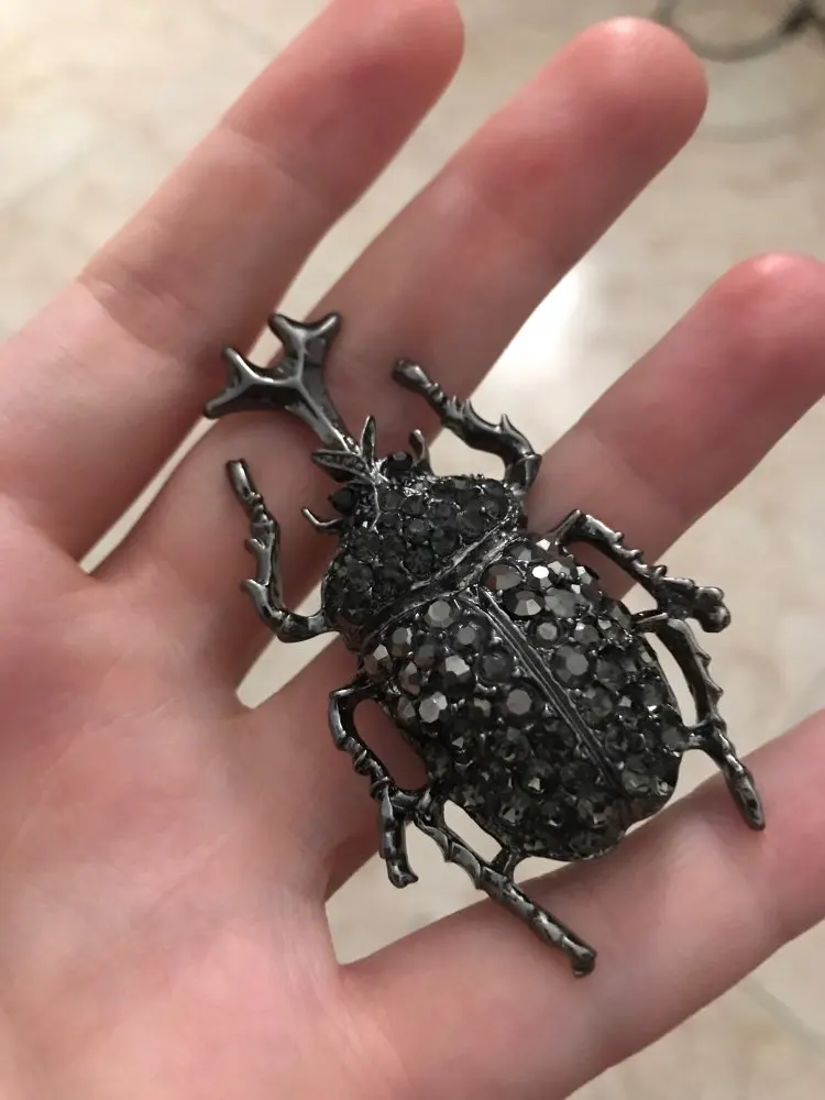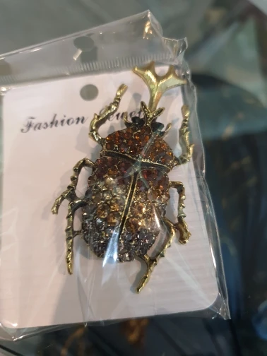На фото жук цвета серебра с прозрачными камнями.на самом деле брошь оказалась золотистого цвета,а камни какие-то зеленоватые! Совсем не такую брошь хотела получить.по доставке нареканий нет.