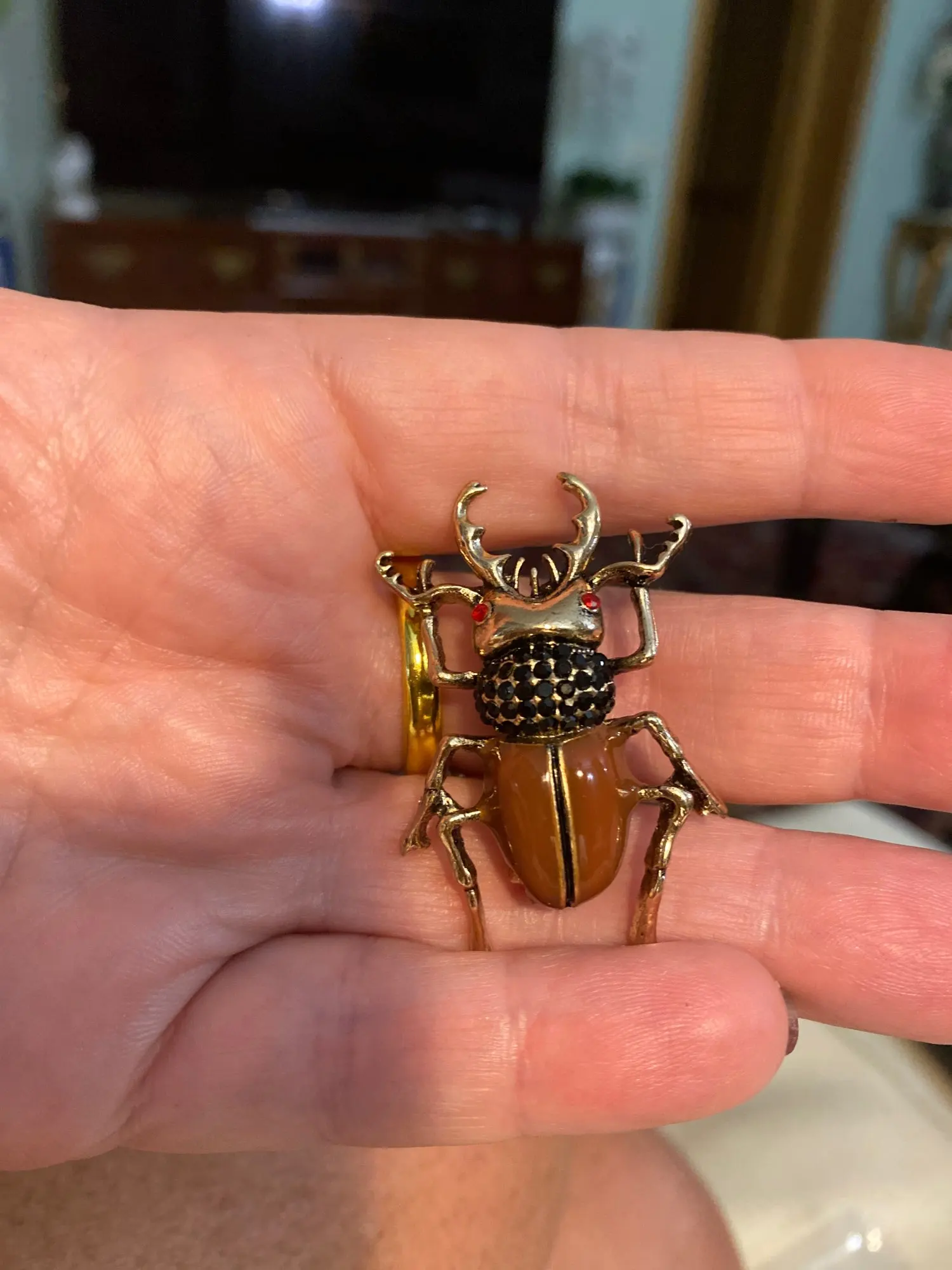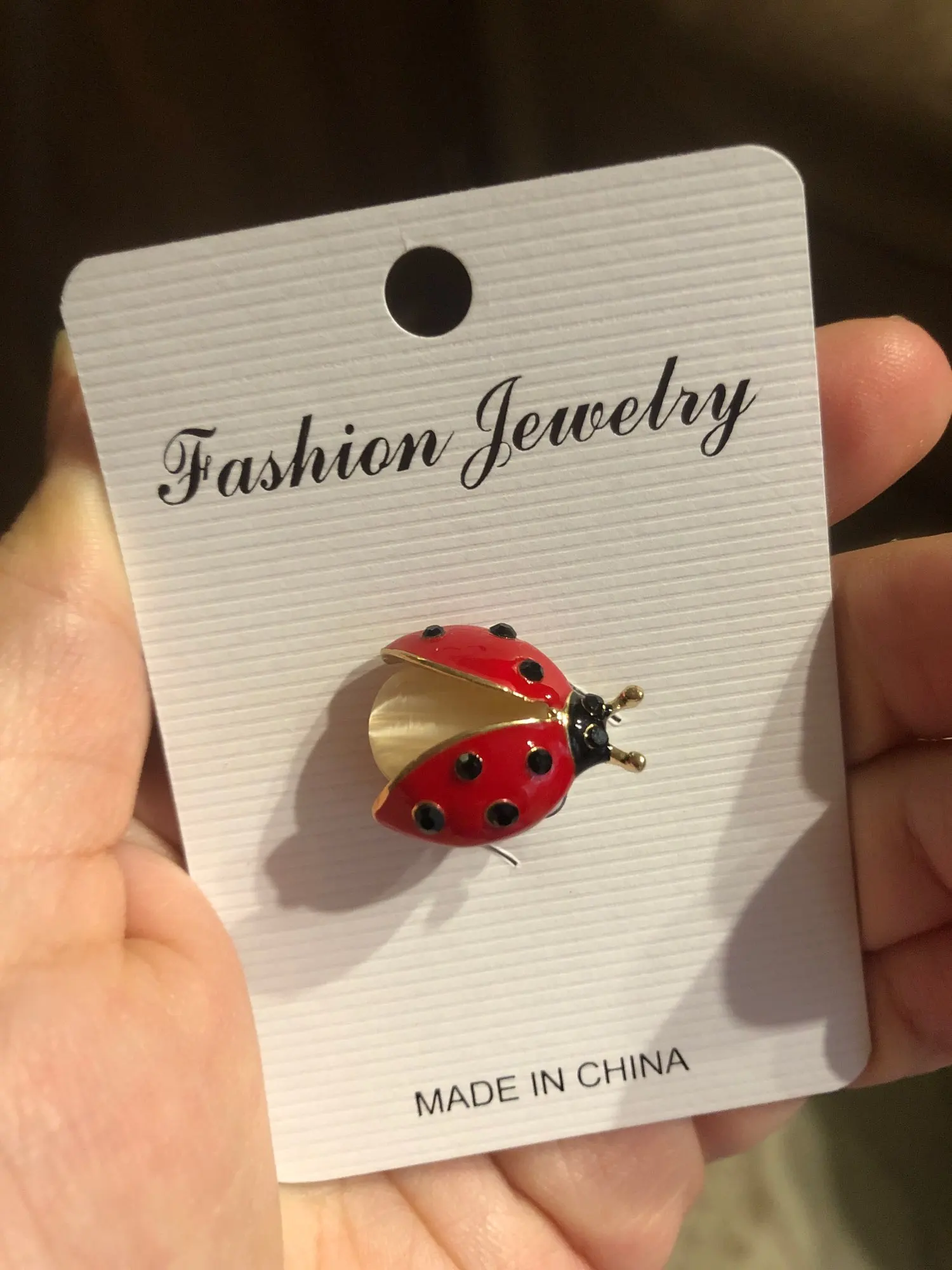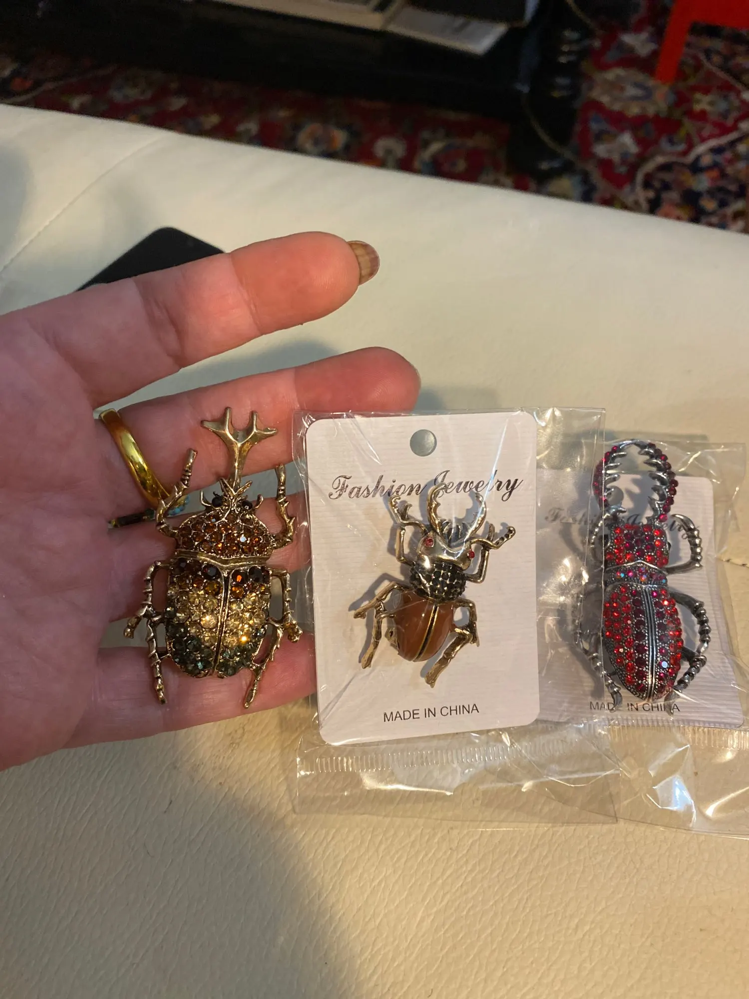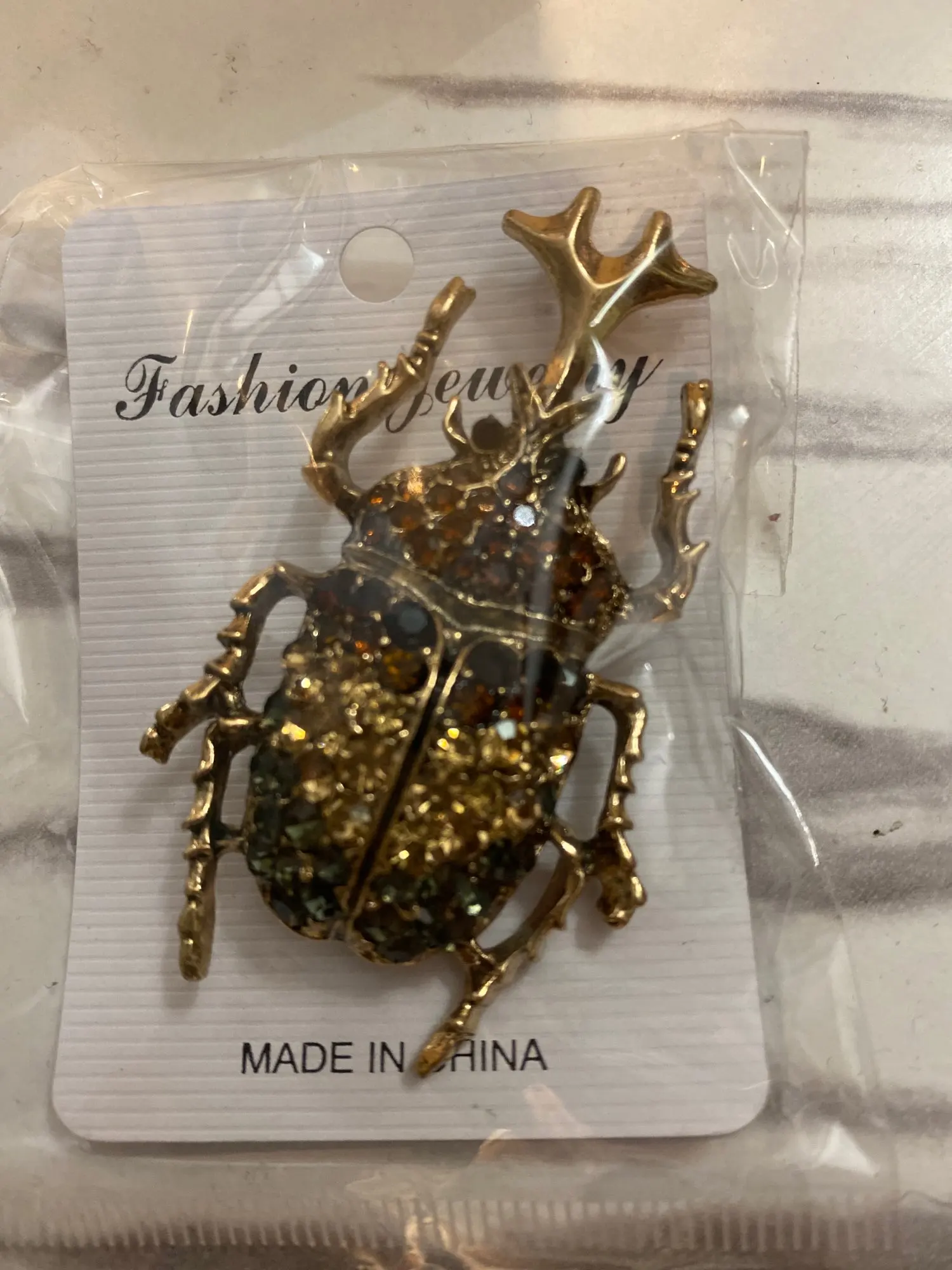Очень мило, это так же, как на фотографиях. Это не займет больше времени, чем ожидалось, и он пришел в конверт, завернутый в пузырьковый пластик, очень хорошо защищен. Я заказал две жуки для своей коллекции брошей. Магазин рекомендуется!
