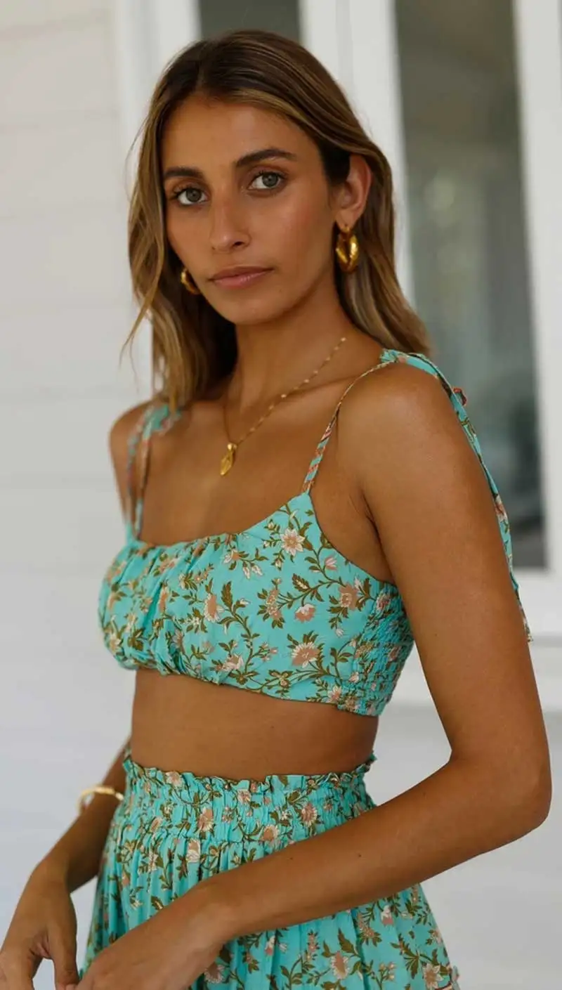 Женский комплект одежды в стиле бохо с юбкой с цветочным принтом, Модный укороченный топ на бретелях-спагетти и мини-юбки, пляжная одежда в цыганском стиле, лето 2020