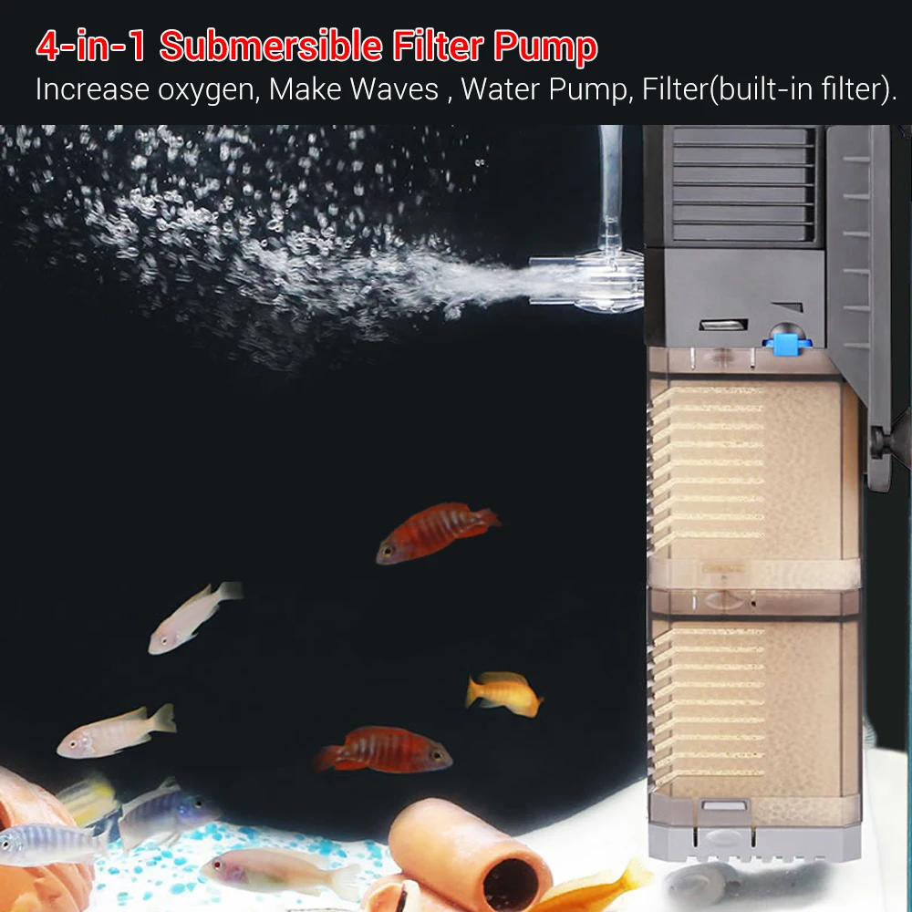 Внутренний аквариумный фильтр SUNSUN 4 в 1, кислородный воздушный насос, устройство для создания волн, погружной циркуляционный насос для аквариума, Губчатый Фильтр