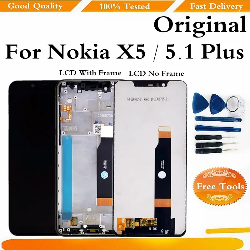 Оригинальный ЖК-дисплей для Nokia 5,1 Plus, сенсорный экран, дигитайзер, полная сборка, запасные части для ЖК-дисплея Nokia X5