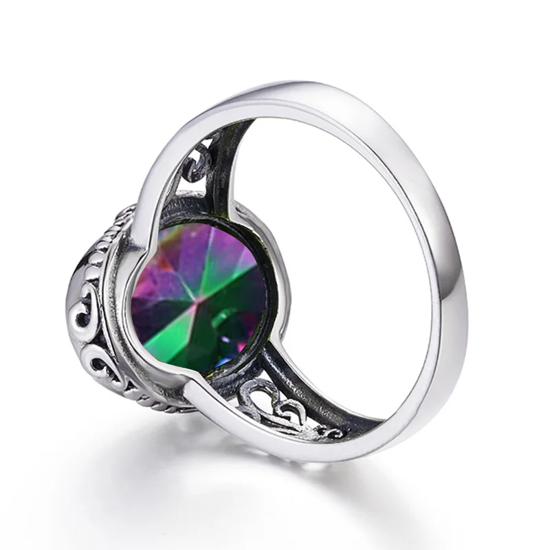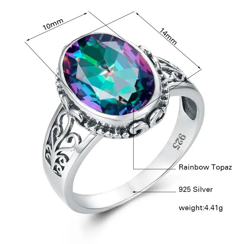 Бренд: Rosewood StoryТип камня: Мистик топазРазмер основного камня: 10*14 ммЧеткость камня: VVSЦвет камня: ПрозрачныйФорма камня: овальнаяТип металла: твердый 925 пробы серебристыйMeatal Цвет: античное сереброВес изделия: 4,41 гРазмер кольца: США #5,#6, #7,#8,#9,#10