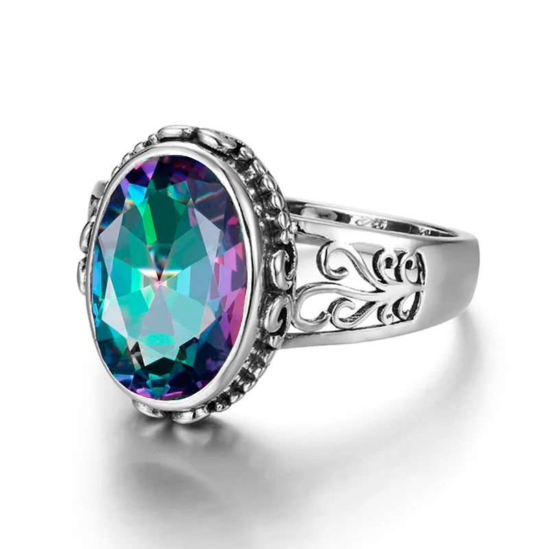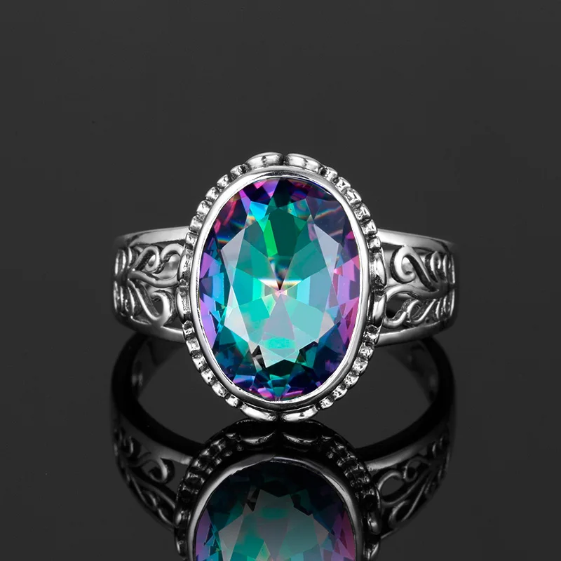 Серебро 925 ювелирные изделия Серебро 925 кольцо для Для женщин с овальный Радуга Мистик Топазом серебряные украшения с драгоценными камнями изысканные Jewely завод
