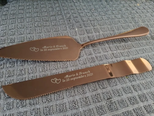 Je recommande. Le vendeur vous envoie des simulations afin que vous validiez l’écriture et ainsi de suite. Par contre c’est peut être un peu petit pour la découpe d’une pièce montée wedding cake mais sinon c’est vraiment super. Même simplement pour les photos de mariage par exemple.