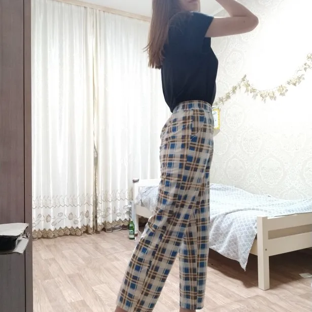 ヾ(*´∀ ˋ*)ノ Чудесные штаны! Отправили быстро, доставили быстро (пару недель), цвет и качество пошива на высоте! По началу напугала ткань на ощупь и их размер. Но когда надела их то поняла, какие же они приятные к ногам и по размеру самое оно!). Думала что будет меньше синтетики в ткани, но это приятная синтетика. Берите на размер больше вашего, чтобы не были короткими. Не жалею что купила! Может быть закажу еще, т.к. мужу и мне понравились ლ(╹◡╹ლ) Особенно бигудюшки-фигнюшки в подарок (≧∇≦)/