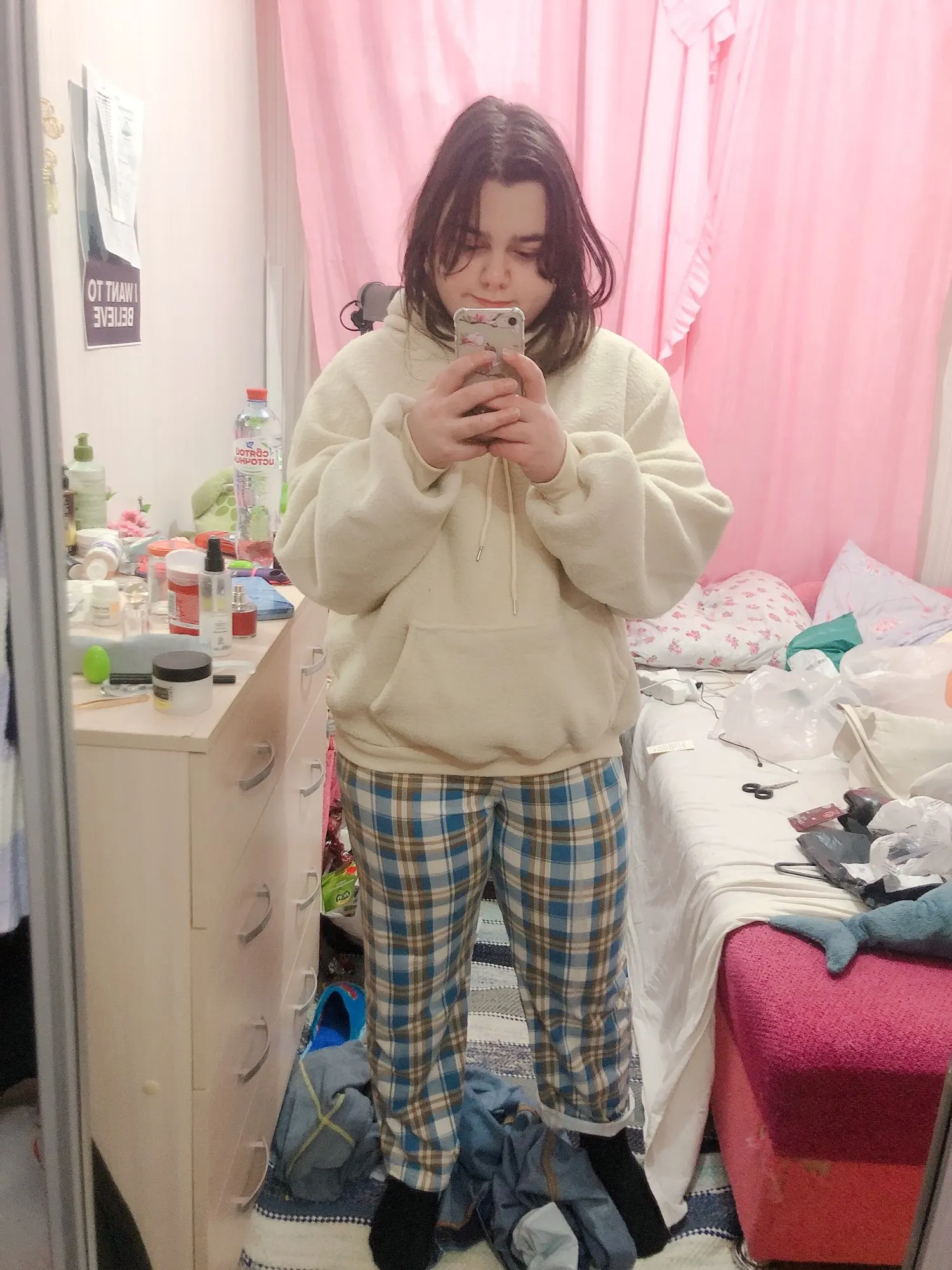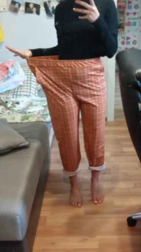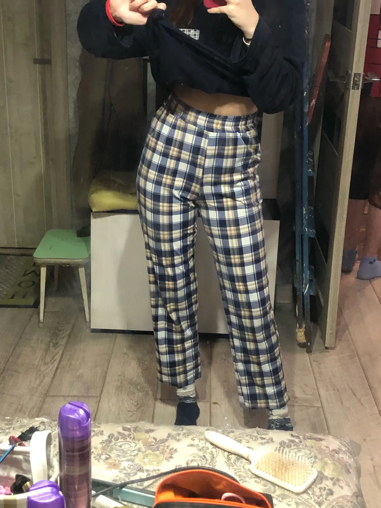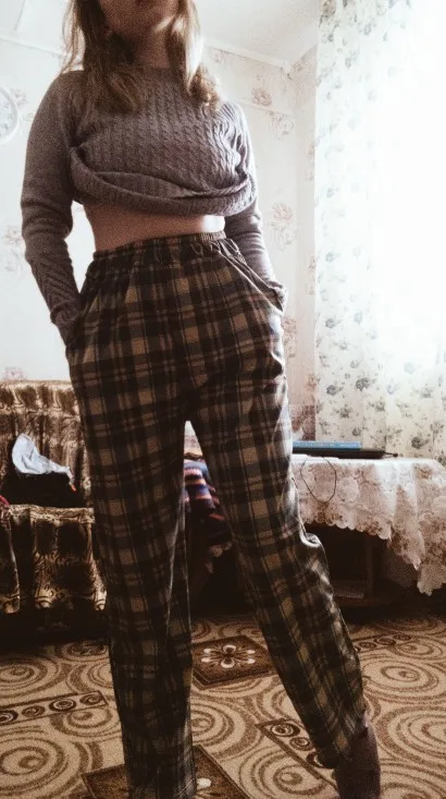 Штаны напоминают пижамные, на попе плохо сидят. Поэтому можно носить с какими-то тоже оверсайз вещами сверху, которые будут закрывать попу. В остальном очень понравились. Резинка хорошая, всё держит. Цвет крутой, стильный. В целом, если носите оверсайз, то вам подойдет :)