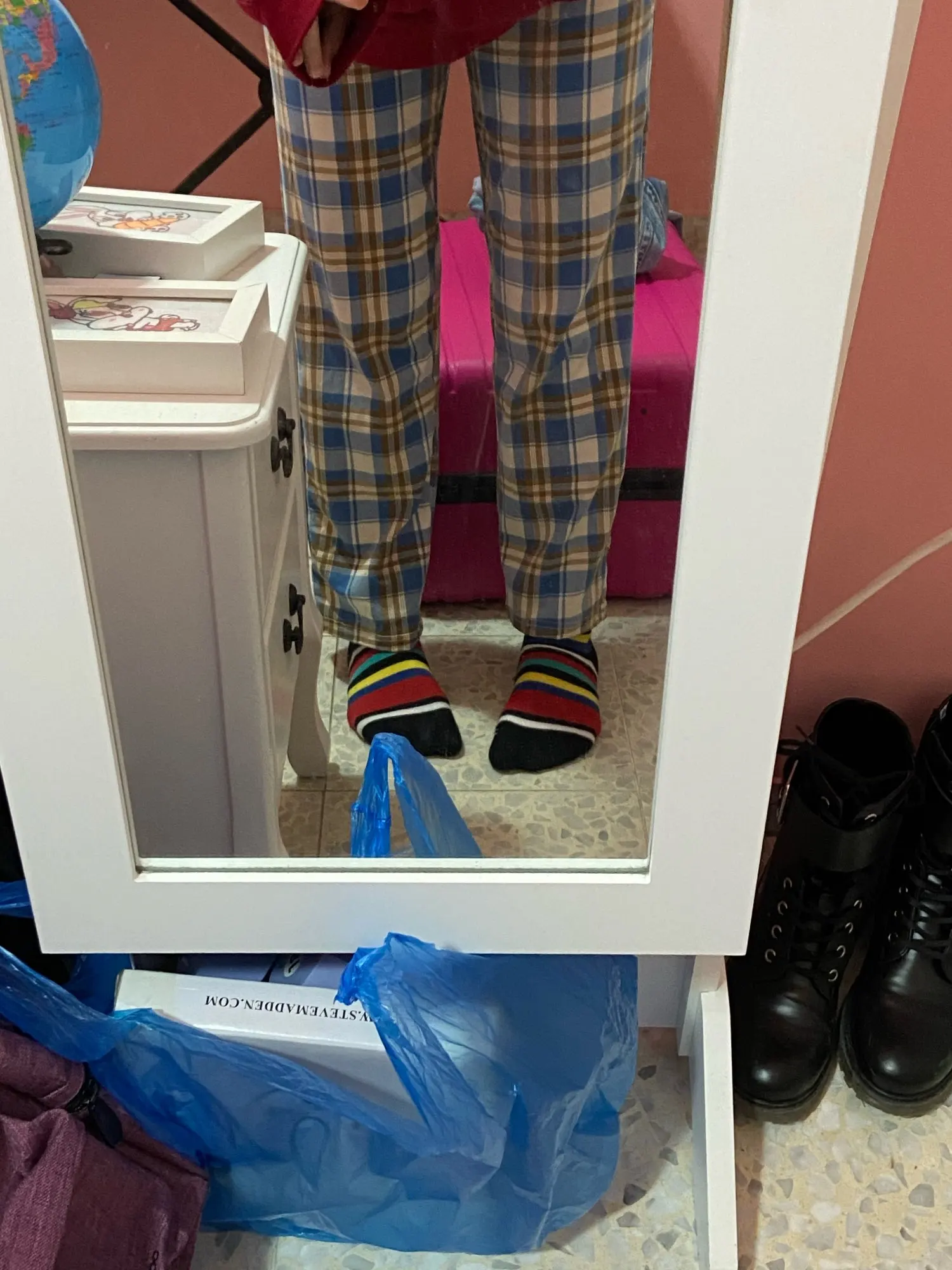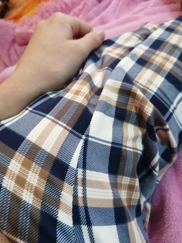 Очень мягкие, они выглядят как пижамы. Я заказал больший размер, и он выглядит очень маленьким, но он эластичный, поэтому дайте немного, но он все еще немного туго (не неудобно), обычно мой размер брюк L. Он пришел с подарком, я не знаю, что это такое, но он ценится, я думаю, что это для волос.