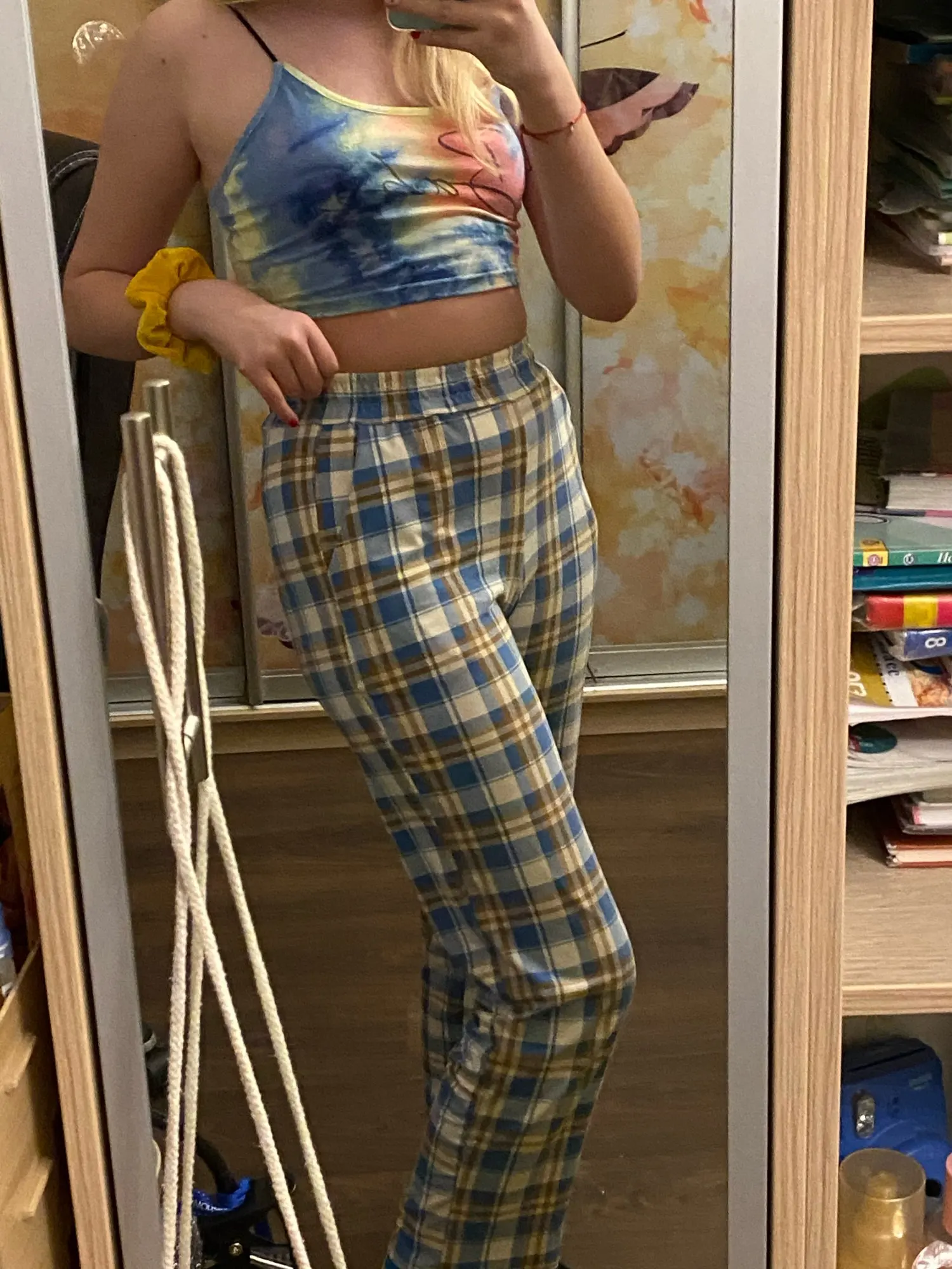 штаны хорошие, немного похожи на пижаму. на рост 172-173 брала xl, боялась, что в талии велики будут, но они прям идеально сели. насчёт длины тоже боялась, что короткие будут с моим то ростом) но не, норм. короче я довольна, летом буду ходить :з
