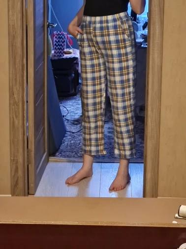 брюки больше похожи на пижамные. Материал лёгкий, на тёплую весну, лето. на рост 153 немного велики.