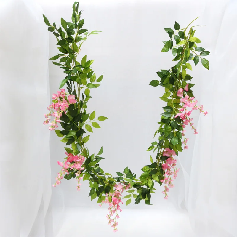 Искусственные листья, цветы, лоза, пластиковая проволока из ротанга, аксессуары для украшения дома, свадебные декоративные растения, искусственные цветы на стену, 2 метра
