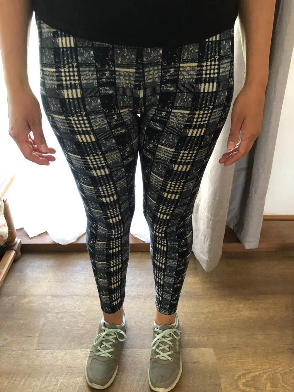 Эти леггинсы являются одними из самых удобных в своем теле. Ткань тонкая, но не просвечивающаяся, очень мягкая. Очень быстрая доставка, я определенно рекомендую! Они соответствуют вашим обычным размерам и, безусловно, очень эластичные. Пояс не очень прочный, что делает эти леггинсы еще более удобными.