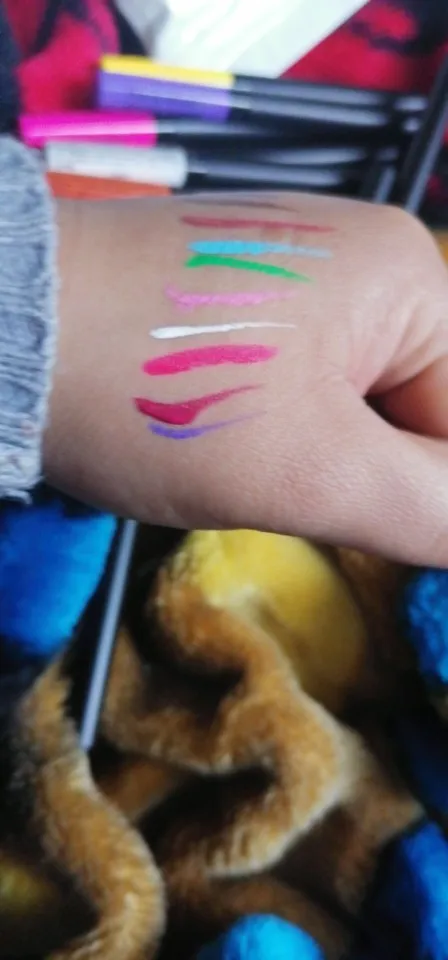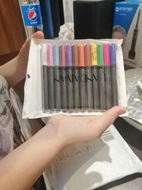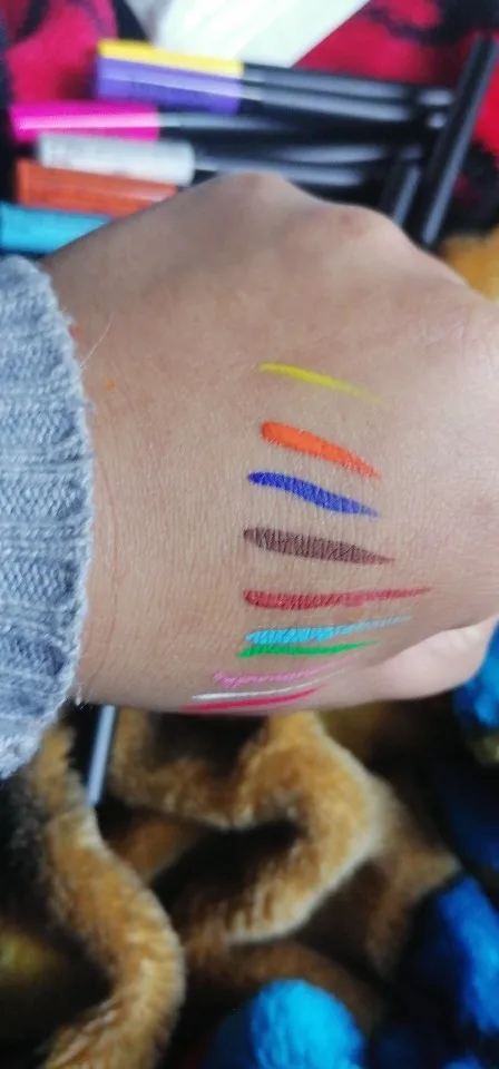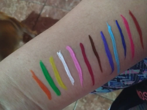 Мне они понравились! Продукты прибыли в хорошем состоянии, имеют хорошую пигментацию, некоторые трещины при сушке, но они хорошего качества, цвета милые, матовые и хорошие для пигментации, простая в использовании кисть оставляет тонкую линию (Приблизительно 2 мм). Доставка в Чили занимает 1 месяц