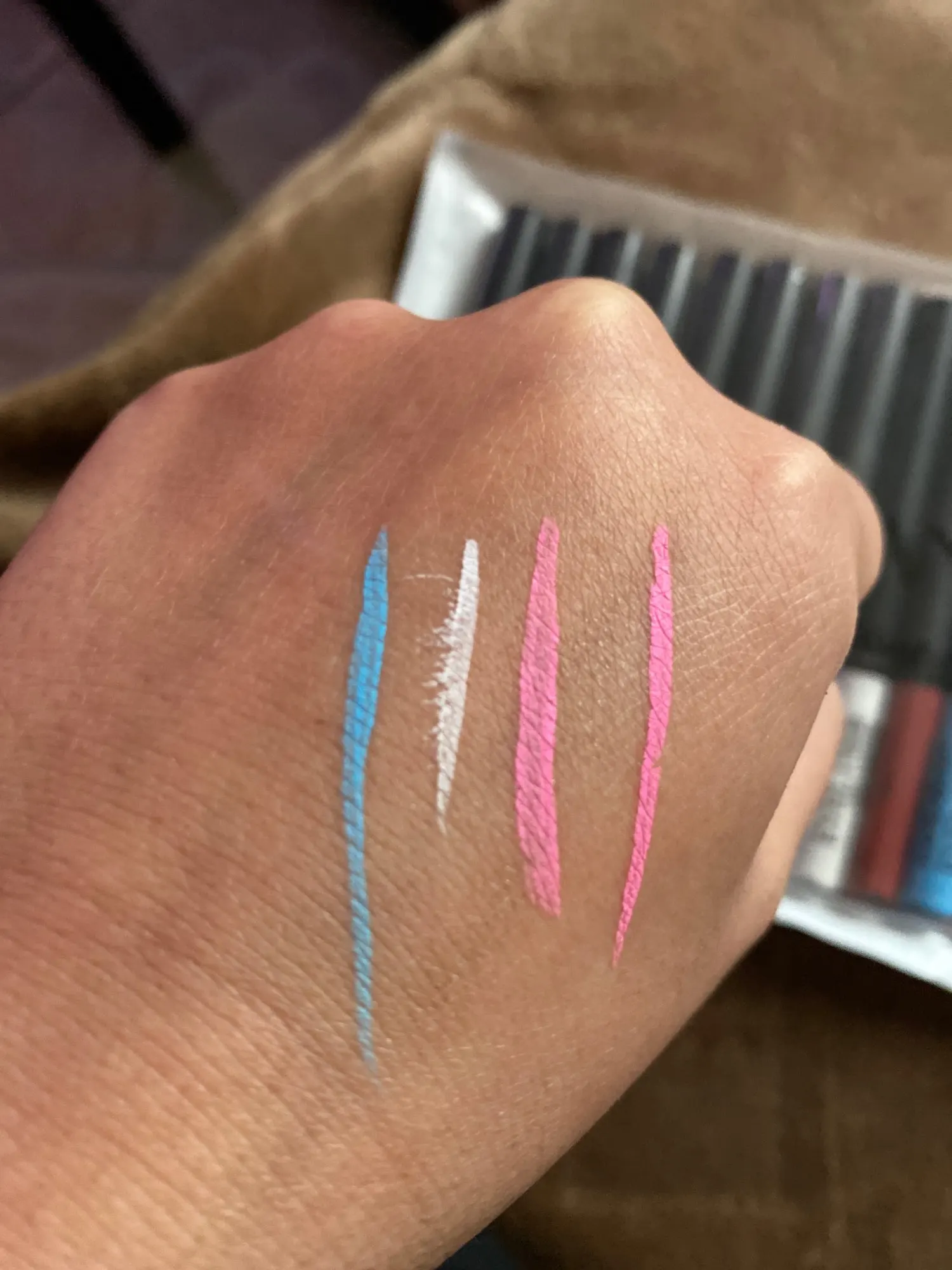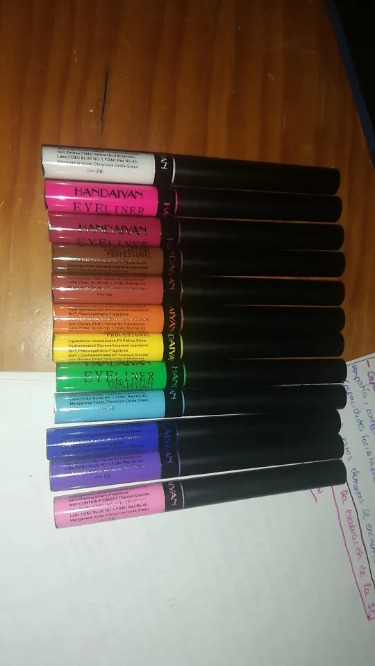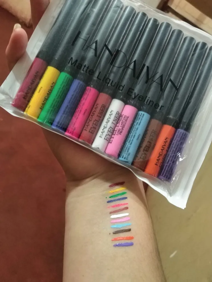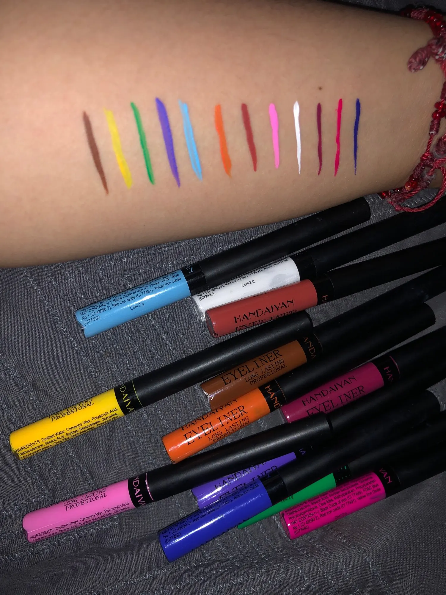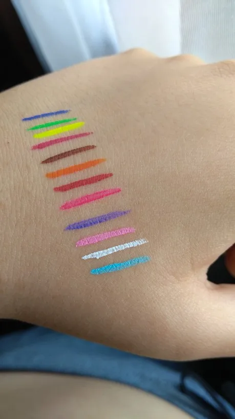 the colors are really pigmented. It took a while to arrive. the product itself it's ok, the liner formula ir a bit plastic, meaning that i can "peel" off the liner. it doesn't come off with water, you have to use a makeup remover which is really cool for humid climates or pools.