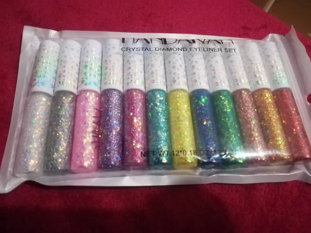 Должен признаться, что у меня не было хороших ожиданий в отношении подводки для глаз, но я сделал приятный сюрприз, они хорошего качества, жидкости и хорошо заряжены блестками. Вы должны дать ему по крайней мере 2 прохода и ждать среди них, чтобы высохнуть, потому что они занимают достаточно времени, чтобы высохнуть, если вы оставите их очень толстыми с самого начала, прозрачный клей и блеск очень конечны и не раздражают глаза, что-то важно. Это хороший продукт, очень хорошо упакован и безопасен, и хорошо отслеживает информацию.