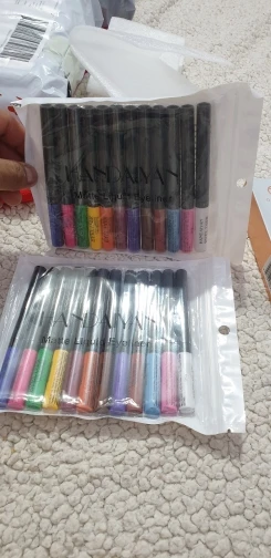 Точно как в описании, все цвета красивые, именно то, что я хотел и для достижения желаемой непрозрачности, мне просто пришлось использовать два слоя (прилагается фотография меня ищет белую подводку для глаз). Только один, но, в том, что два разметки (Селеста и фиолетовый), они сломались и пропустили некоторые продукты. В противном случае, я очень доволен своей покупкой. Рекомендовано.