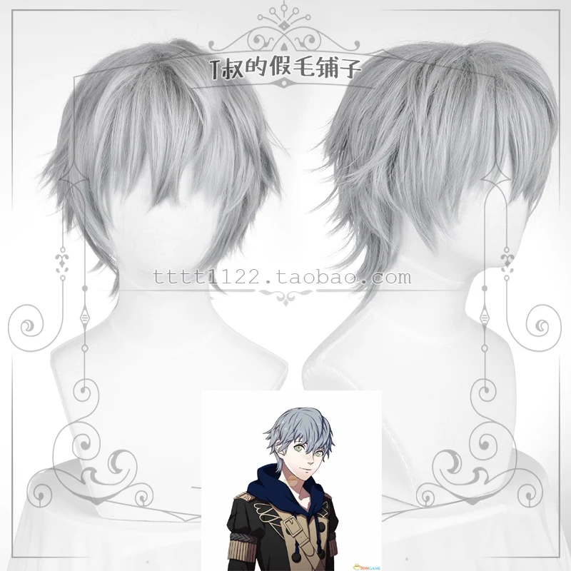 Парик с эмблемой огня три дома, Эш косплей, серые короткие синтетические термостойкие волосы, комикет, ролевая игра, для взрослых с шапочкой