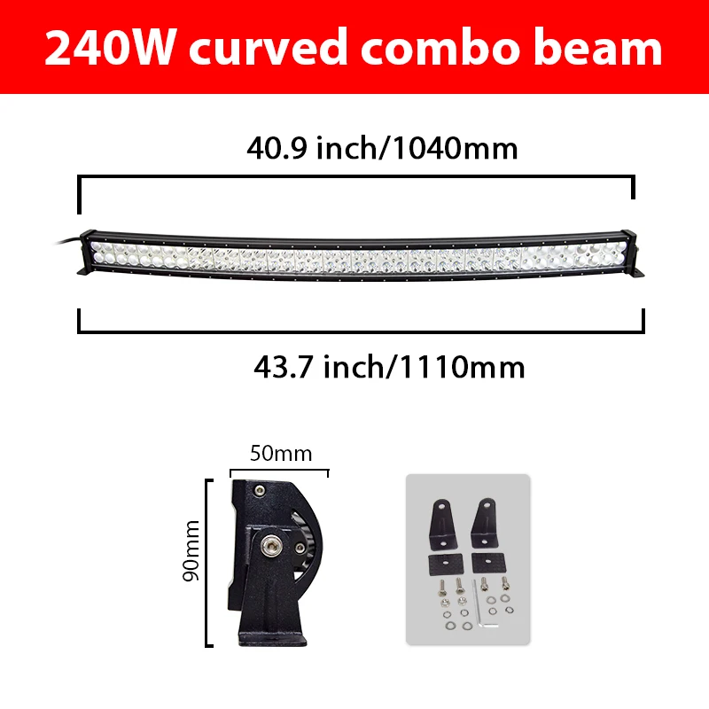 1x двухрядный изогнутый СВЕТОДИОДНЫЙ светильник бар (Монтажный кронштейн в комплекте)
