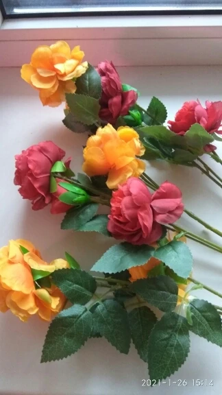 ерунда полнейшая! не тратьте деньги! цветки мелкие, из плохой ткани, не такие яркие и пышные, как на их картинке. у меня в сравнении со столовой ложкой(((( зачем к этому убожеству прикрепили полметровый черенок- вообще не понятно. очень плохой товар!!!