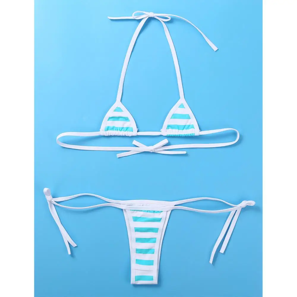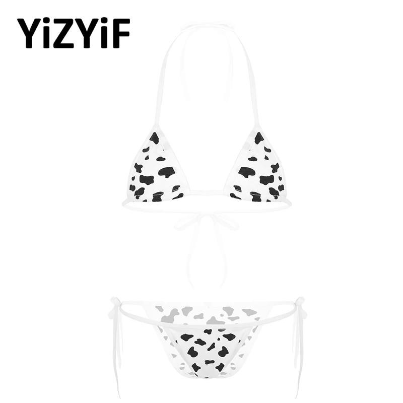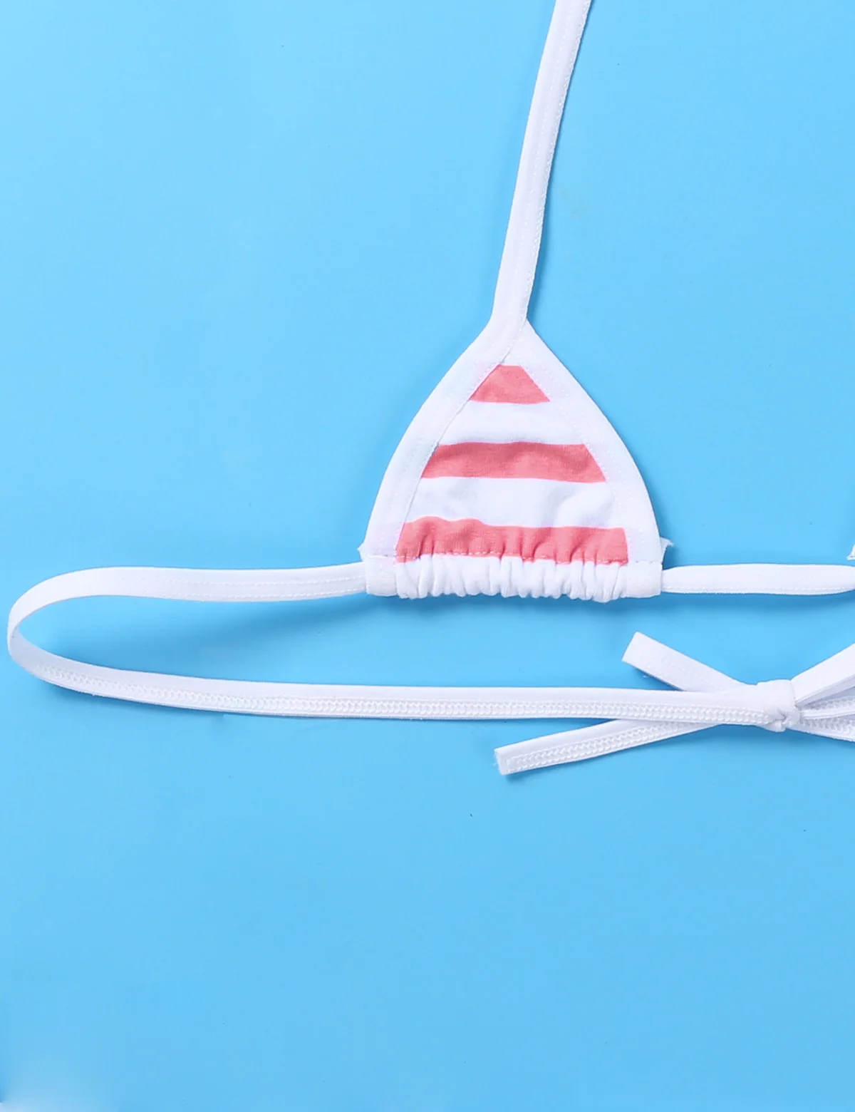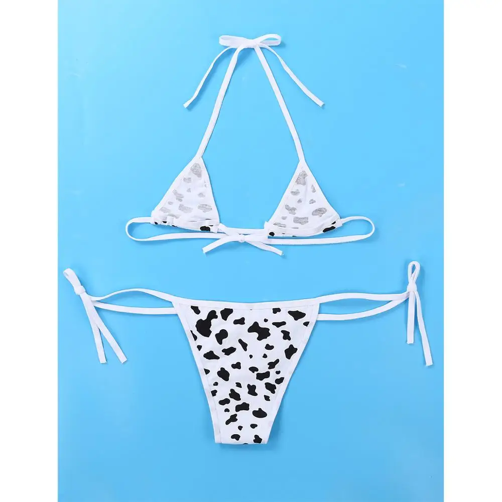 Женское нижнее белье, комплект бикини в милом стиле, мини-бикини в горошек молочной коровы или в полоску, комплекты нижнего белья, бюстгальтер с лямкой на шее, топ с трусами