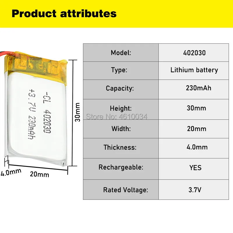 Литий-ионные аккумуляторы высокой емкости 402030 3,7 в 230 мАч, литий-полимерная перезаряжаемая батарея для Bluetooth GPS MP3 MP4 рекордера