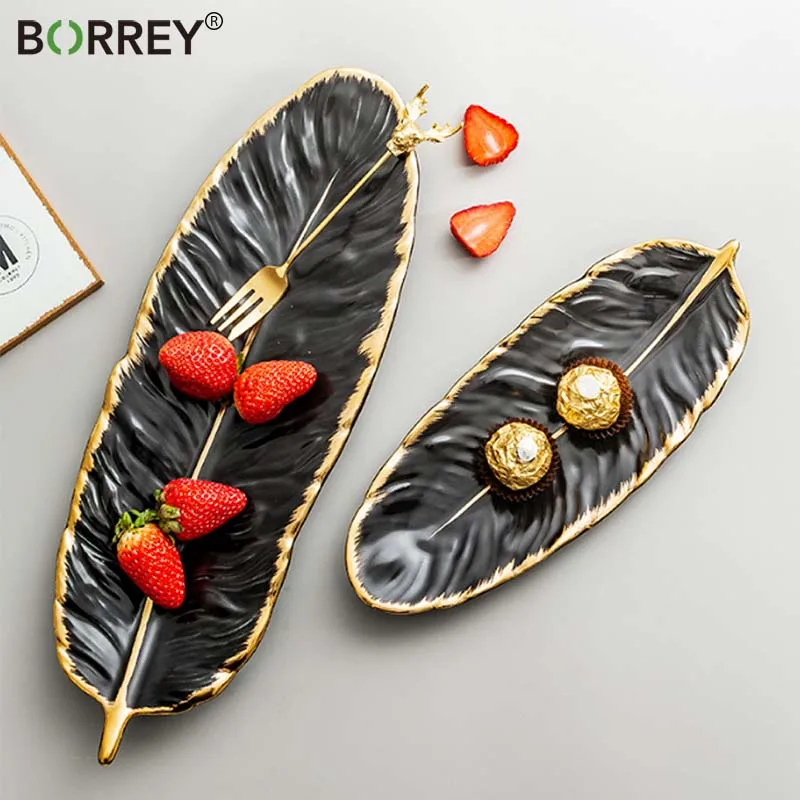 BBORREY керамический поднос для хранения тарелок суши тарелка лист перо форма конфеты безделушка ювелирные изделия поднос для хранения фруктов посуда для хранения