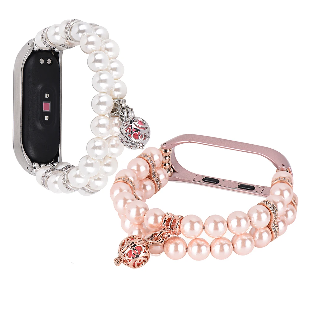 Ремешки для часов Miband 5/6, аксессуары, ремешки с бусинами для Xiaomi Mi Band 4/3, женский браслет для браслета с футляром для духов, металлический каркас