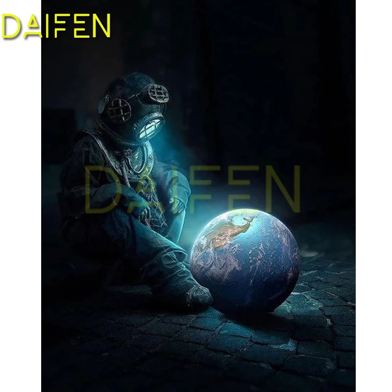 Алмазная 5D Вышивка сделай сам, картина с планетами, луной, круглыми стразами, вышивка крестиком, с инопланетянином, с квадратными стразами, мозаика с астронавтом и землей