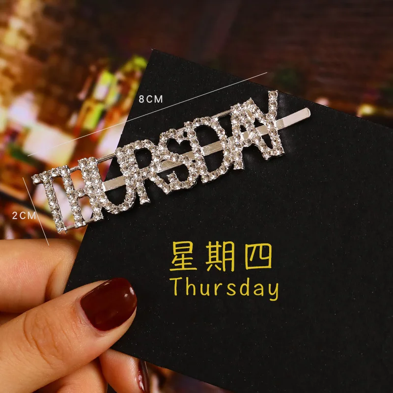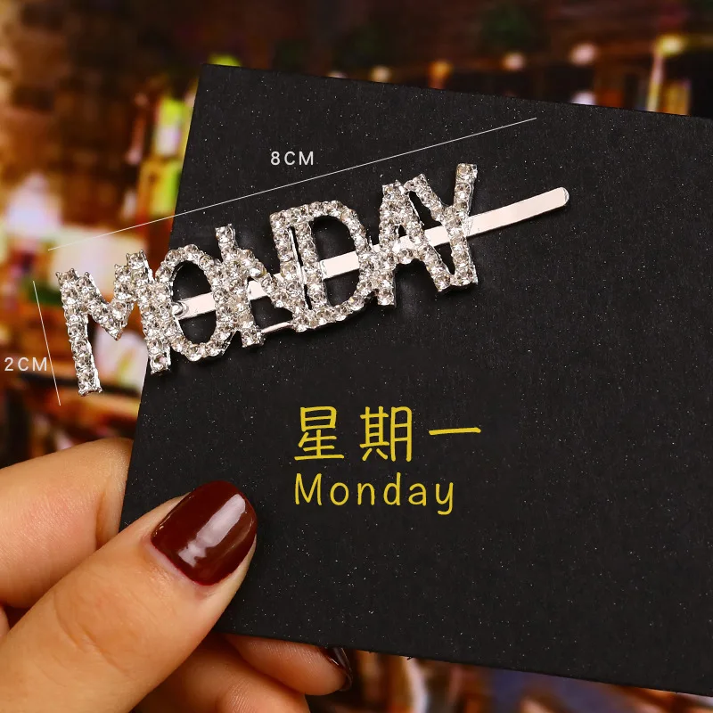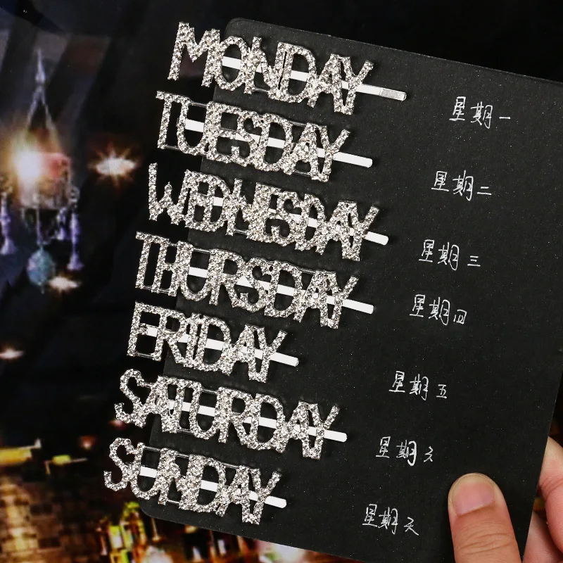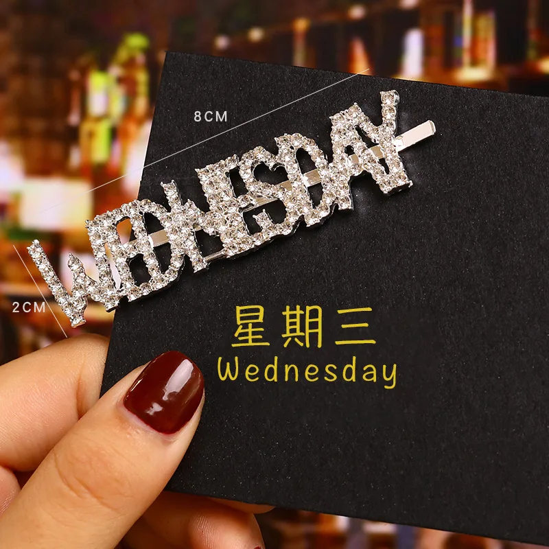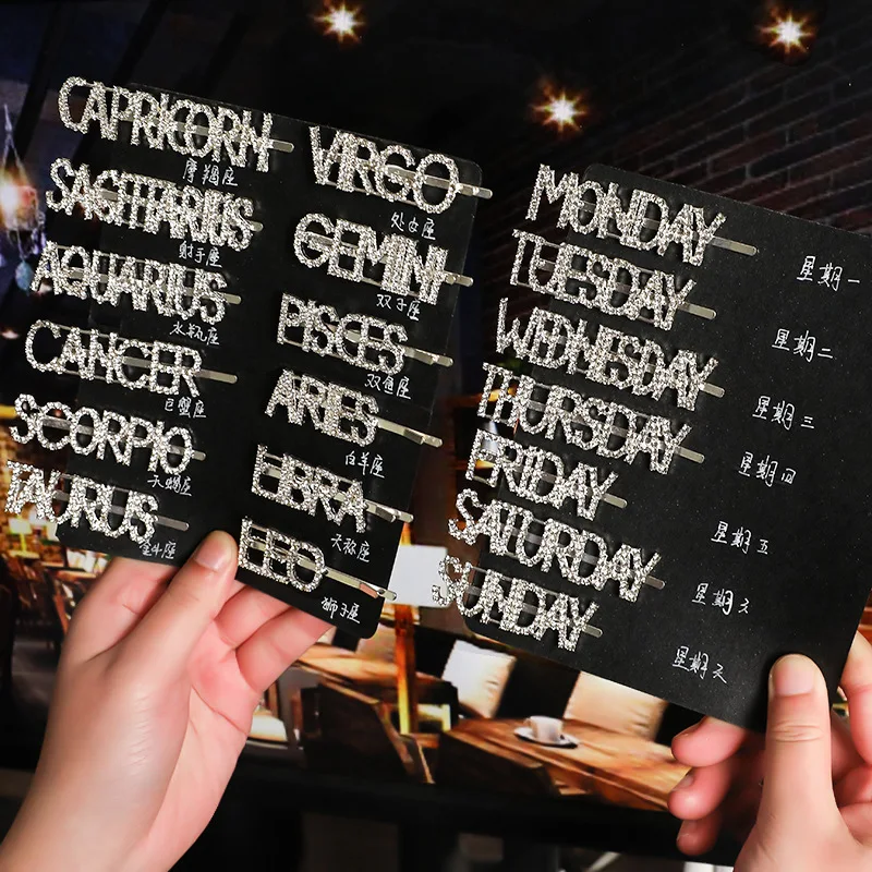 Модные корейские стразы с буквенным принтом Неделя Зодиака, заколки для волос, корейские аксессуары для волос, металлические золотые английские заколки для волос