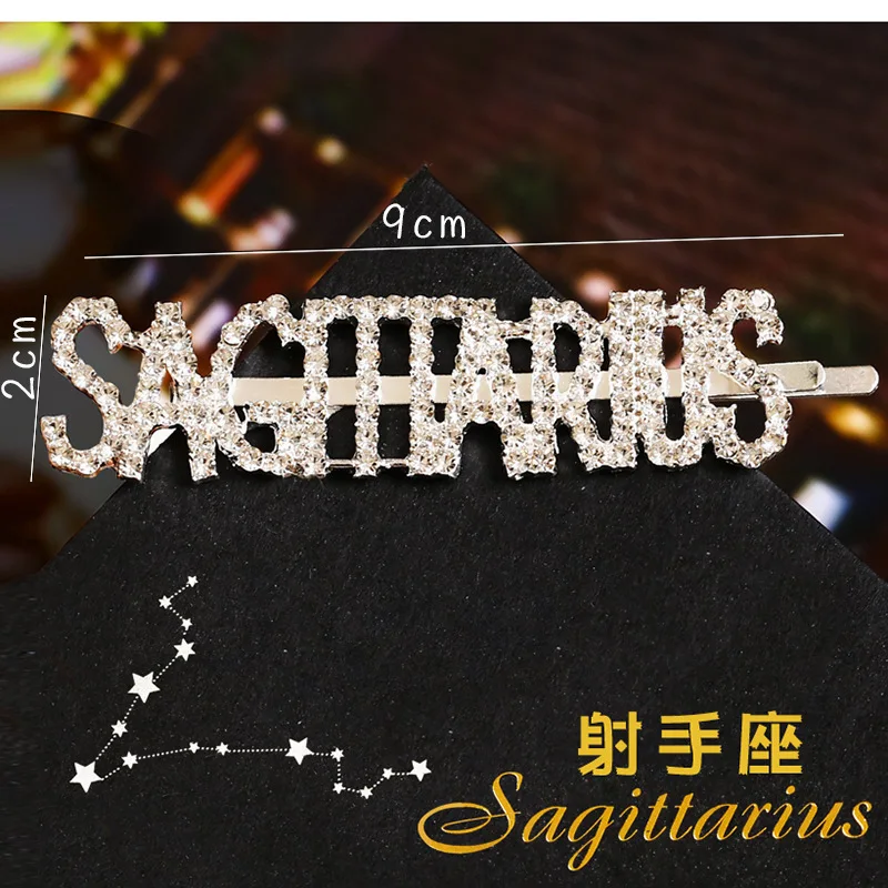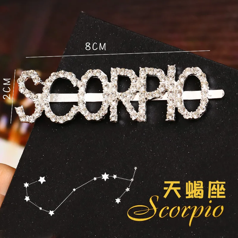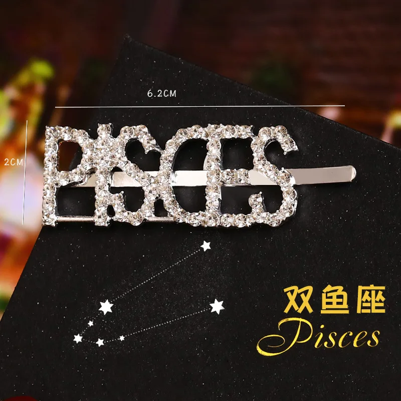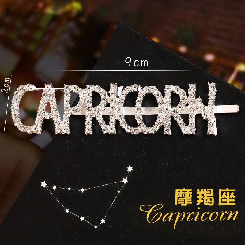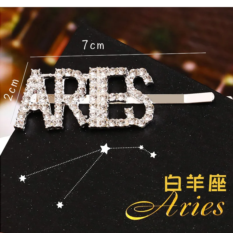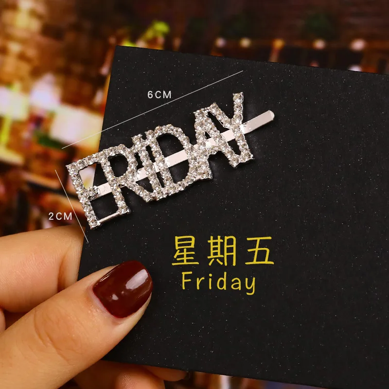 Модные корейские стразы с буквенным принтом Неделя Зодиака, заколки для волос, корейские аксессуары для волос, металлические золотые английские заколки для волос