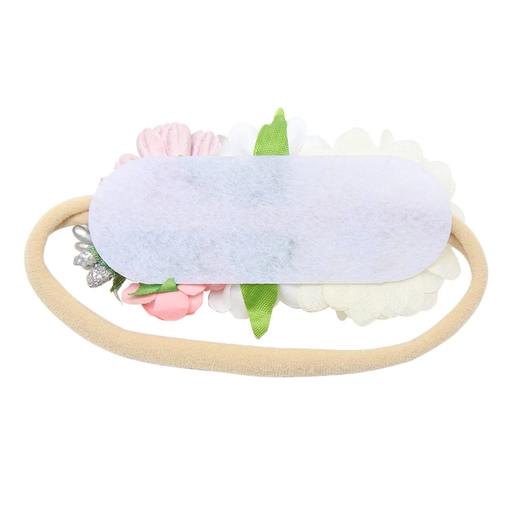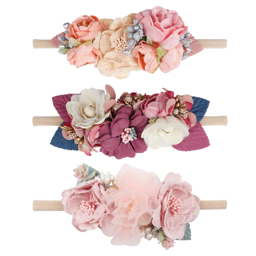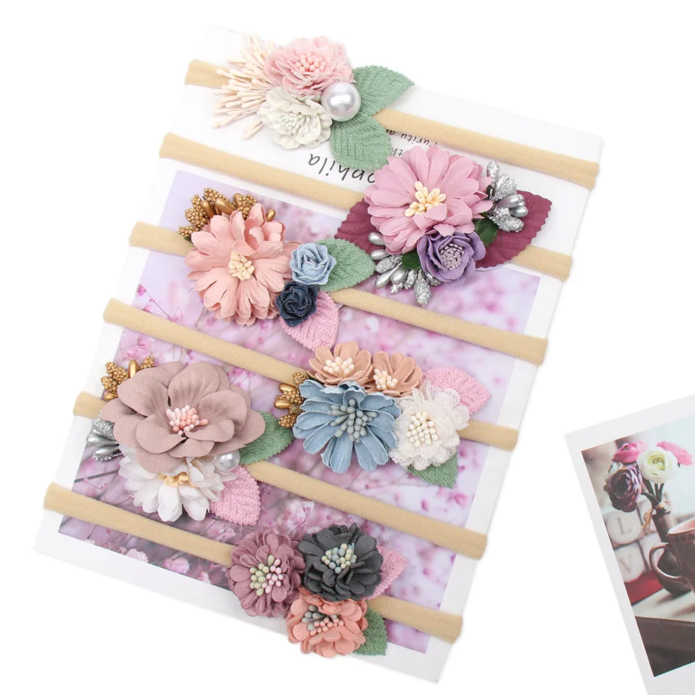Повязка на голову для новорожденных девочек, нейлоновая эластичная, с жемчужинами и цветами, ручной работы, аксессуары для детей, резинки для детей