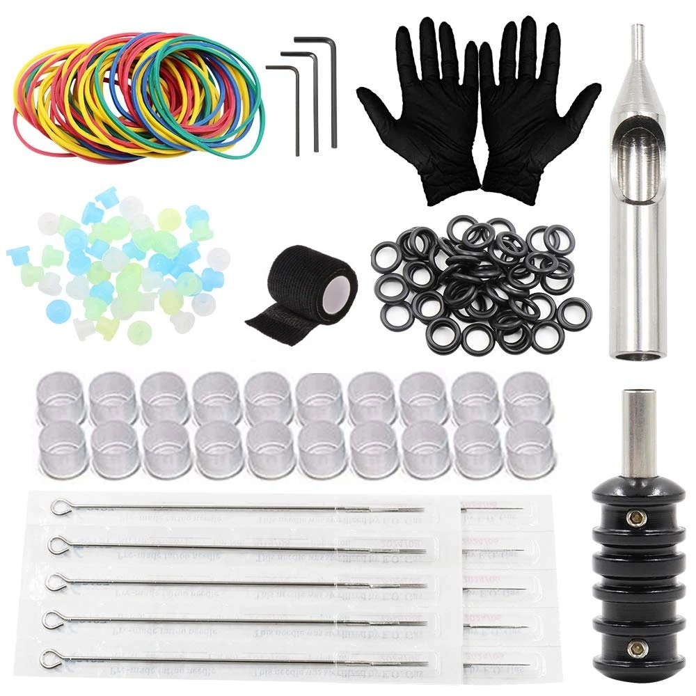 Больше аксессуаров для татуировок-22 мм ручка для тату-машины из алюминиевого сплава, чашки для чернил, 1 набор инструментов для регулировки, черные чернила для тату 5 мл, одноразовые перчатки для татуировок и другие аксессуары для вас (люверсы, уплотнительные кольца, резинки и т. Д.). Высокопроизводительный Набор татуировок, легко наносится на татуировку, отлично подходит для практики.