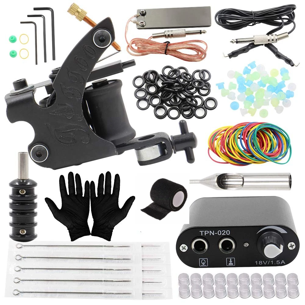 Полный набор татуировок-полный Профессиональный Набор татуировок-хороший выбор для начинающих, учащихся, татуировщиков. Набор для татуировок для начинающих включает в себя все принадлежности для татуировок: тату-машины, тату-чернила, иглы для татуировок, источник питания, зажим, педаль для ног, колпачки для чернил, наконечники, уплотнительные кольца, резиновые ленты и т. Д.