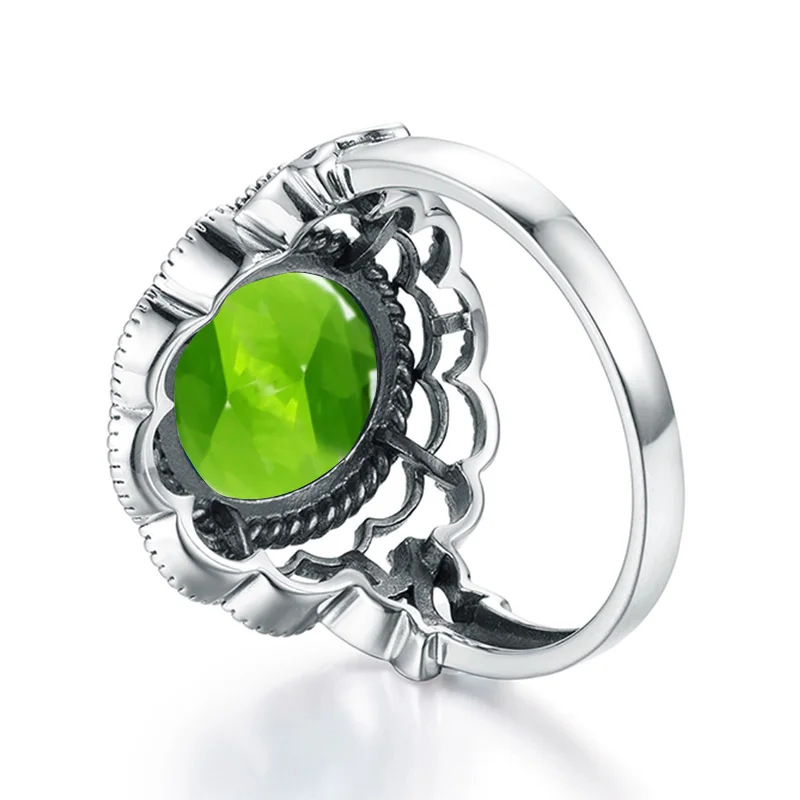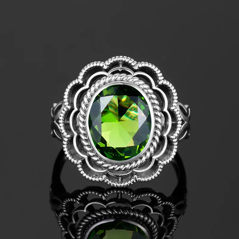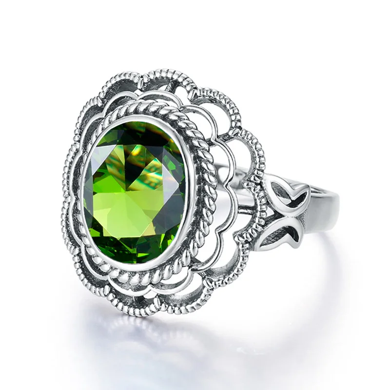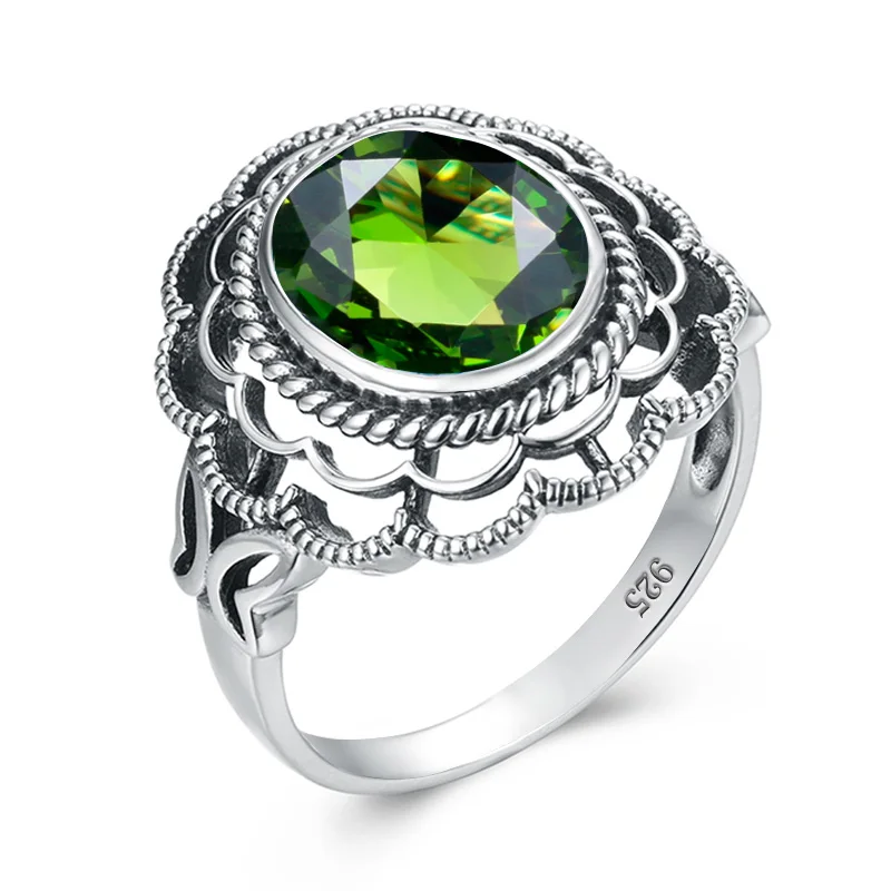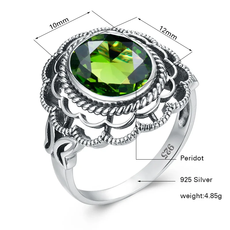Бренд: Rosewood StoryТип камня: перидотРазмер основного камня: 10*14 ммЧеткость камня: VVSЦвет камня: ПрозрачныйФорма камня: овальнаяТип металла: твердый 925 пробы серебристыйMeatal Цвет: античное сереброВес изделия: 4,41 гРазмер кольца: США #5,#6, #7,#8,#9,#10